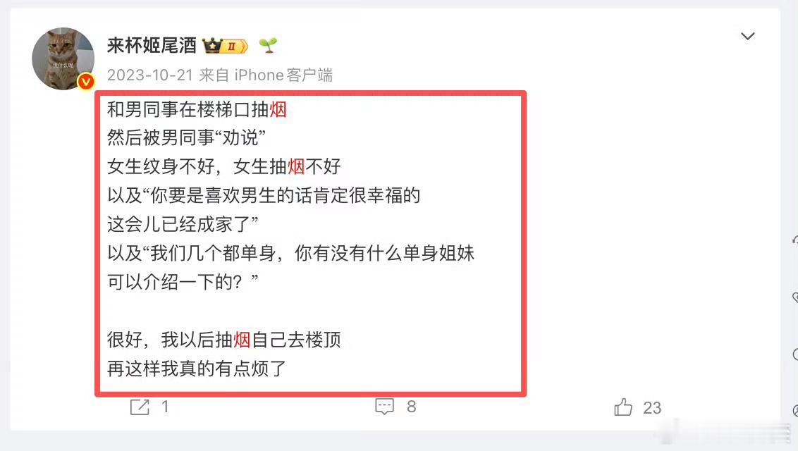 “抽烟的人反感二手烟”,这是我看到过最好笑的笑话。女拳加同性恋加极端禁烟……还真