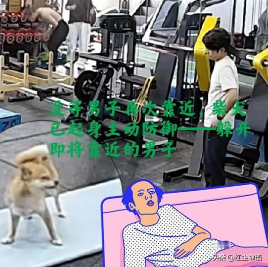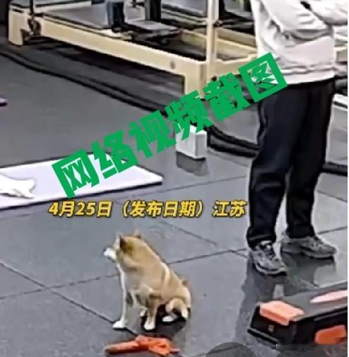 4月25日,江苏一位年轻男子在健身房,不小心将脚下的柴犬“踢飞”。