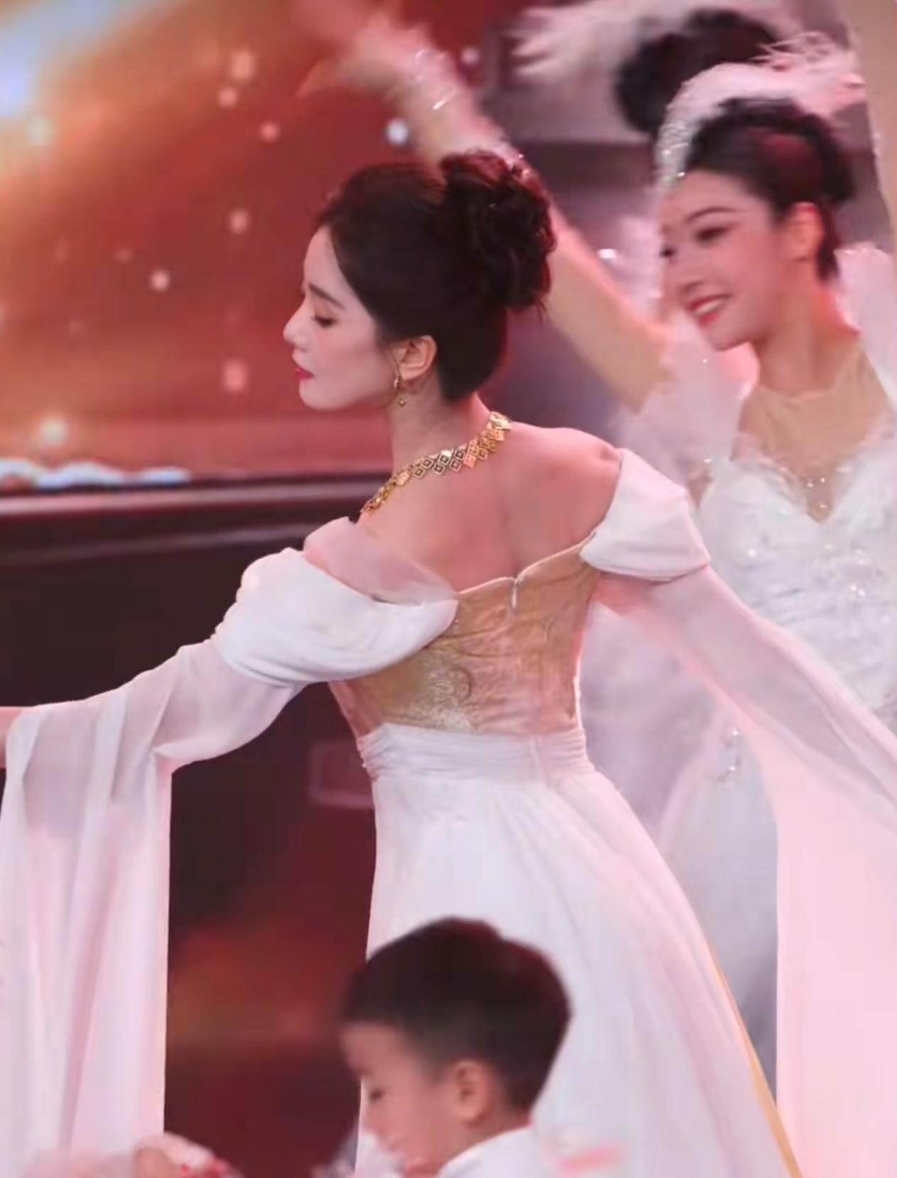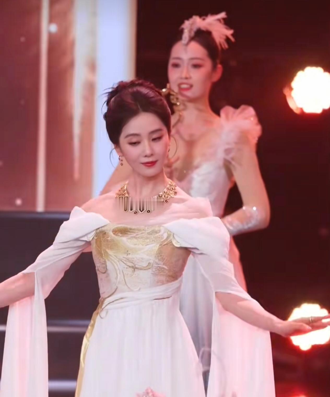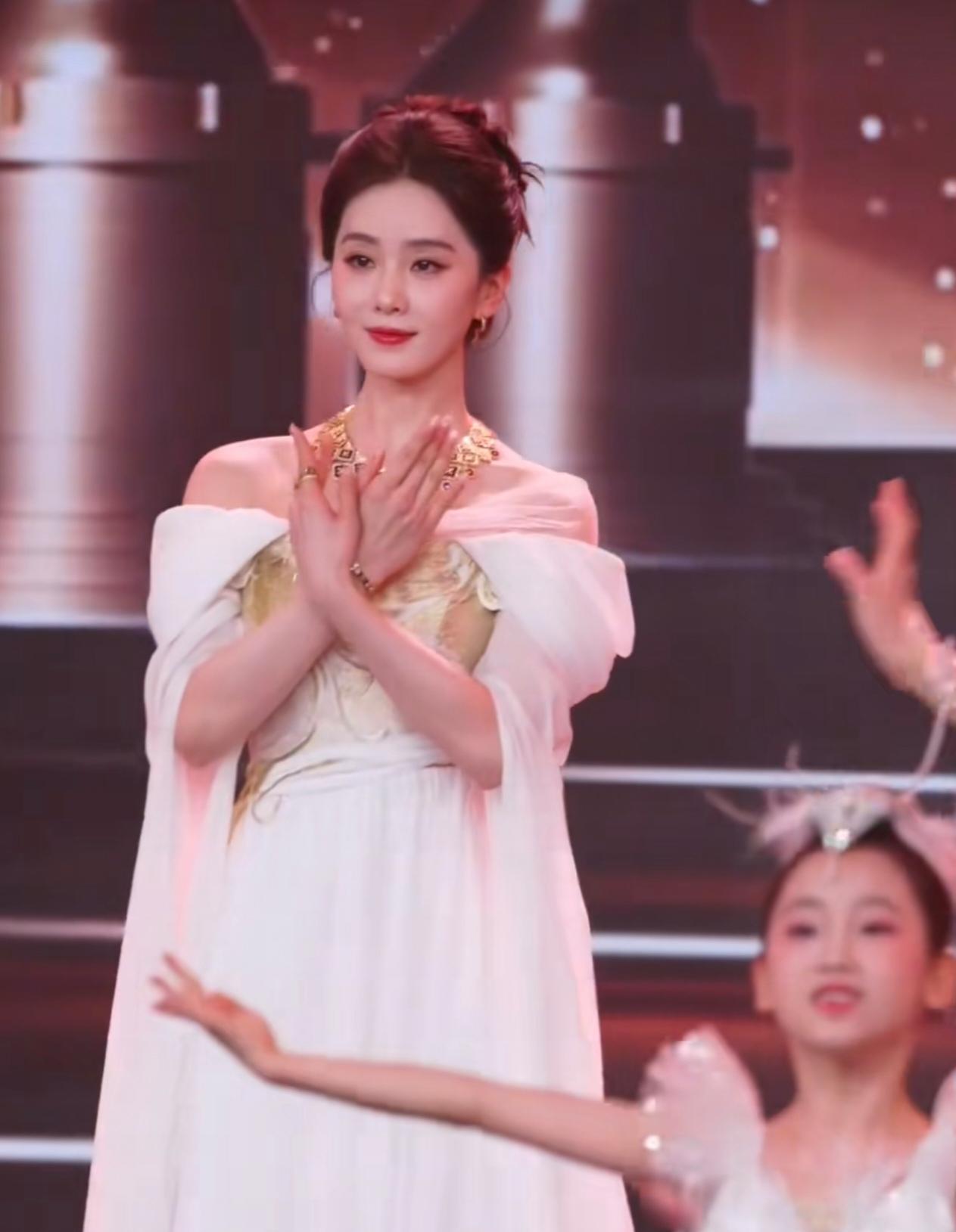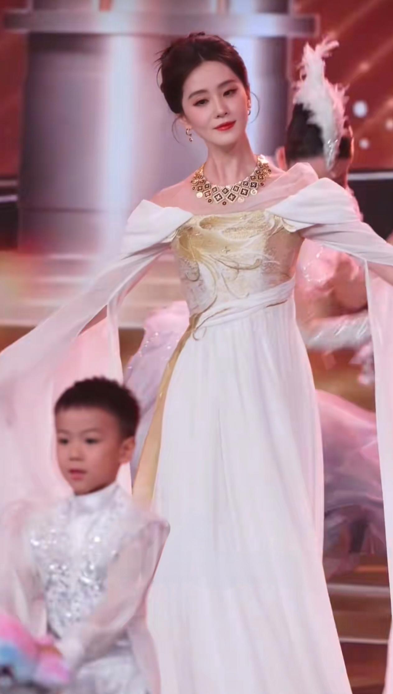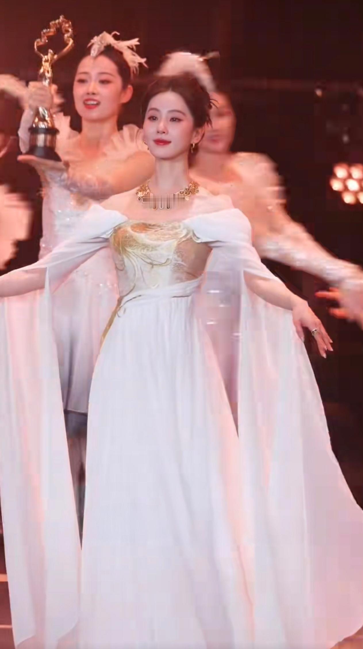 一袭仙气白纱鎏金礼裙登场,直接把东方神女氛围感拉满,真正诠释了什么叫天女下凡。