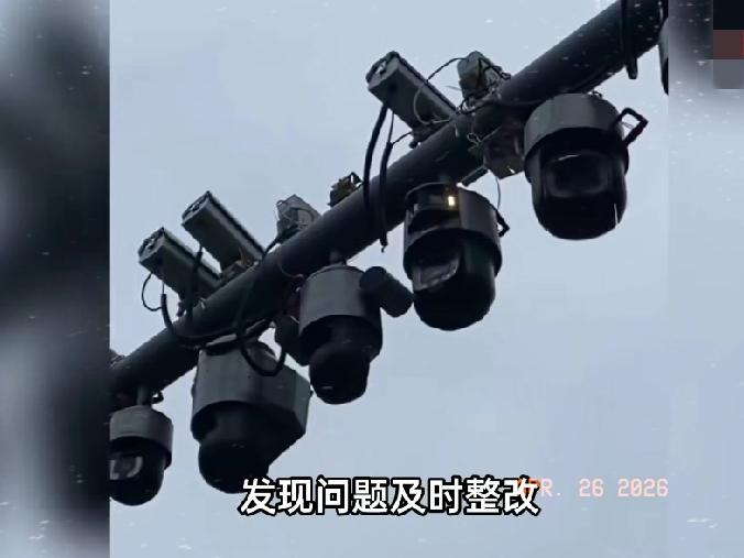 图片里,两根横杆并排架在路口,上面挤满了各种型号的监控探头,有的带补光灯,有的带球罩,密密麻麻像蜂窝。有网友说,以前这个路口探头也不少,但没现在这么夸张,每次开车经过都感觉被几十双眼睛盯着。