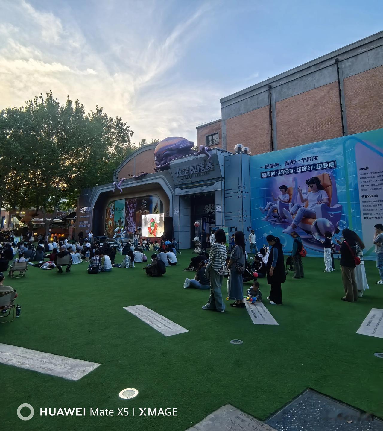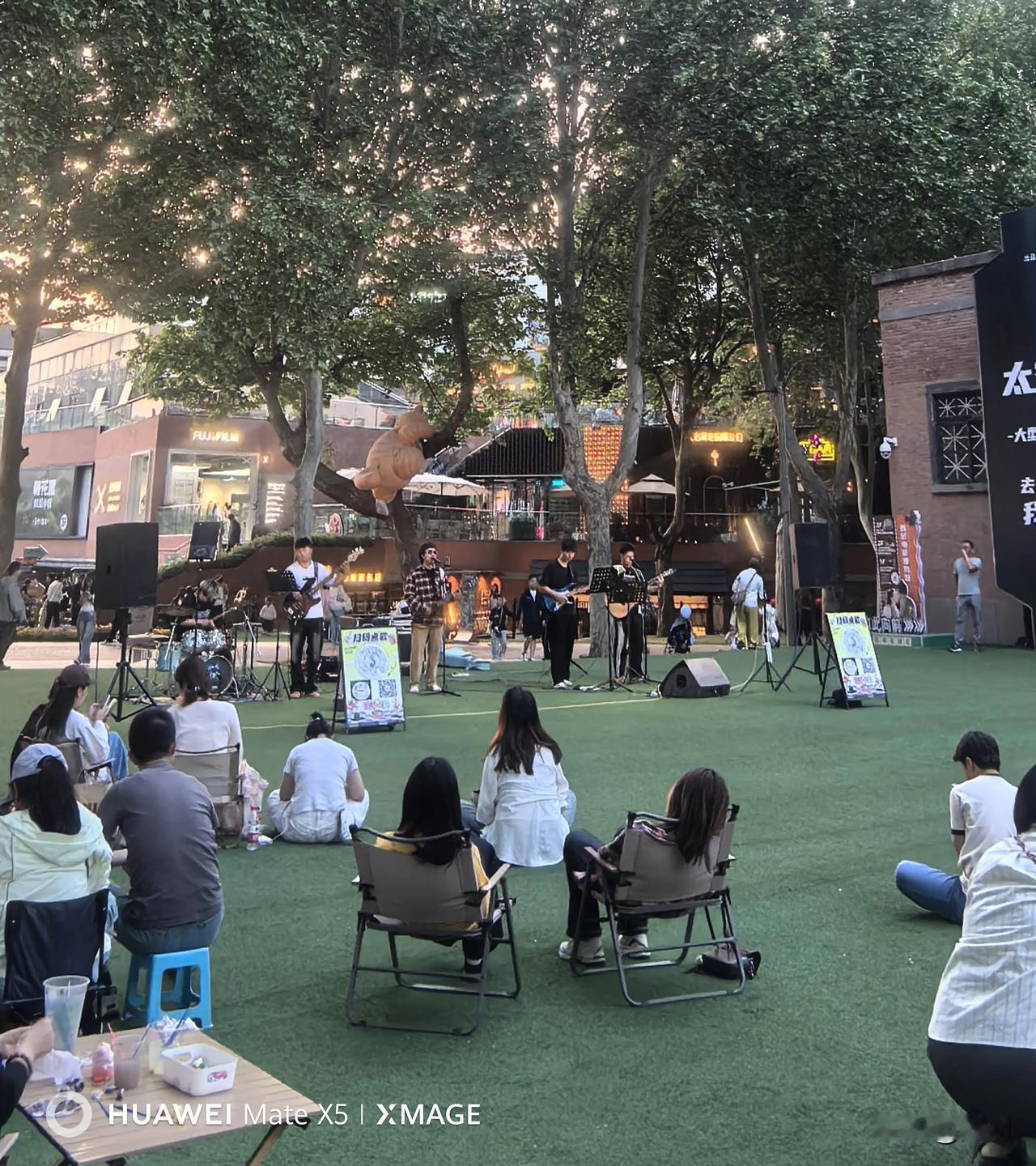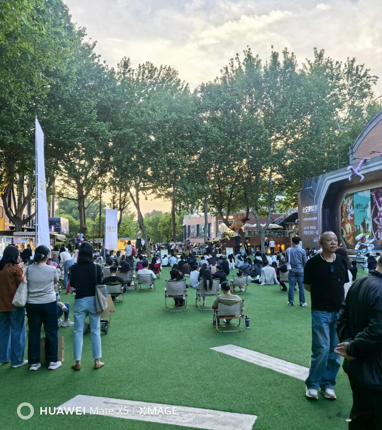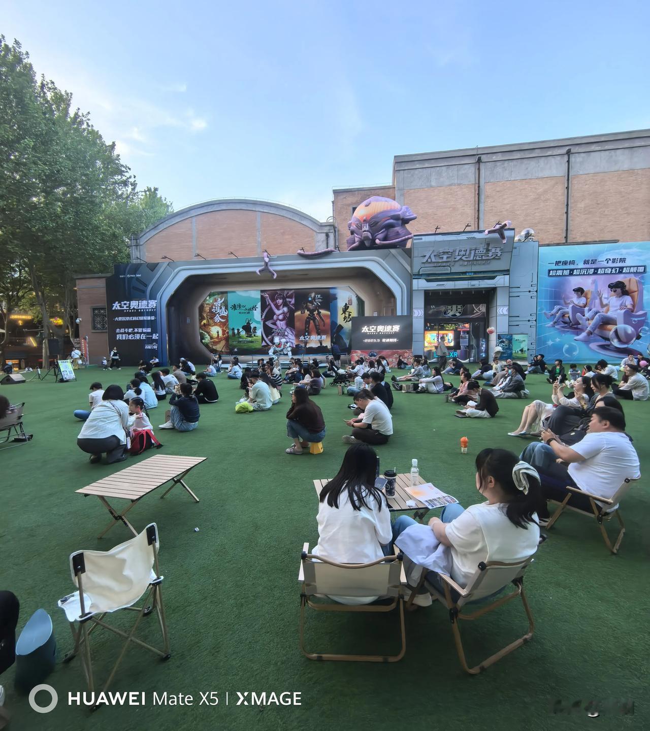 晒图笔记大赛西安电影园区音乐季活动和露天电影,人们席地而坐,即是视觉享受也是精神