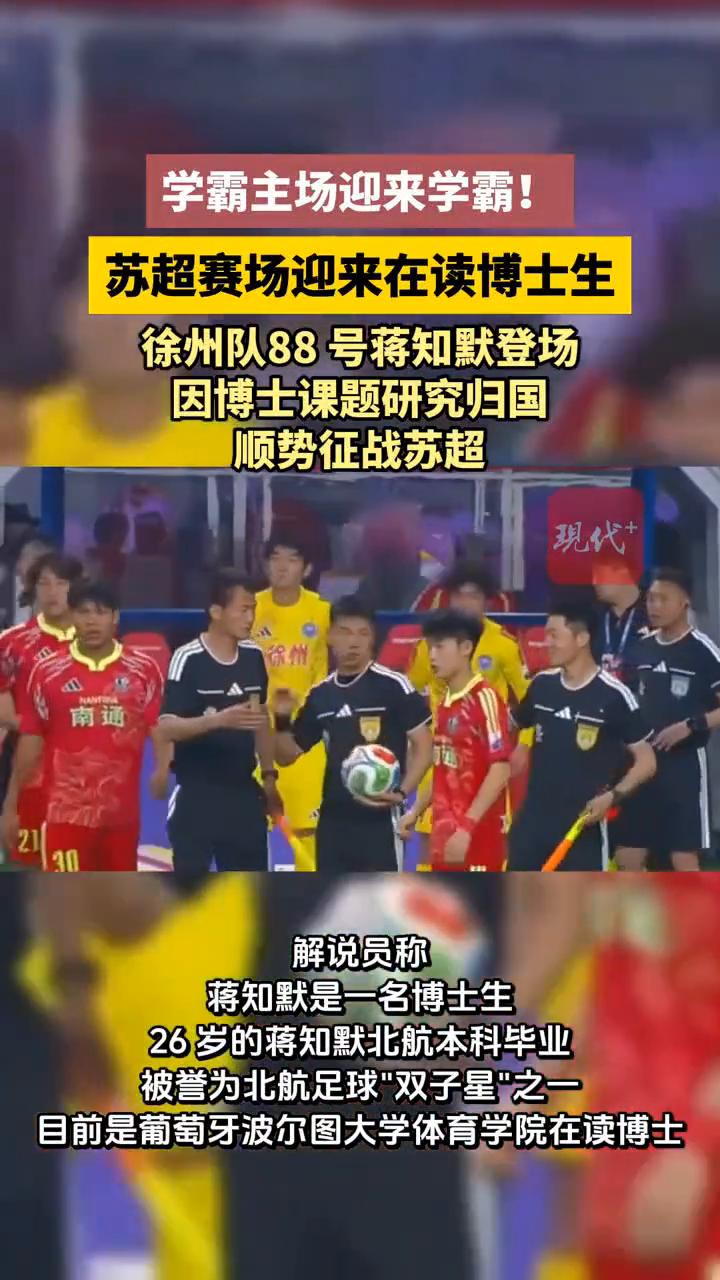 学霸主场迎来学霸!苏超赛场迎来在读博士生,徐州队88号蒋知默登场。