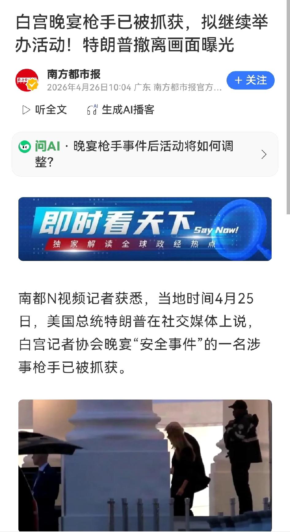 突发!白宫晚宴有枪手被抓获,特朗普撤离画面曝光