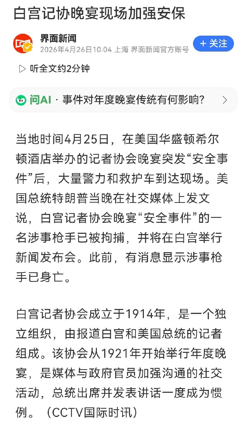 说实话,这事可真够讽刺的。一场用于弥合媒体与白宫裂痕的社交晚会,愣成了持枪闯入的犯罪现场。枪声惊破的不仅是华盛顿的夜,更把这个国家早已四分五裂的政治生态,扒了个底朝天。