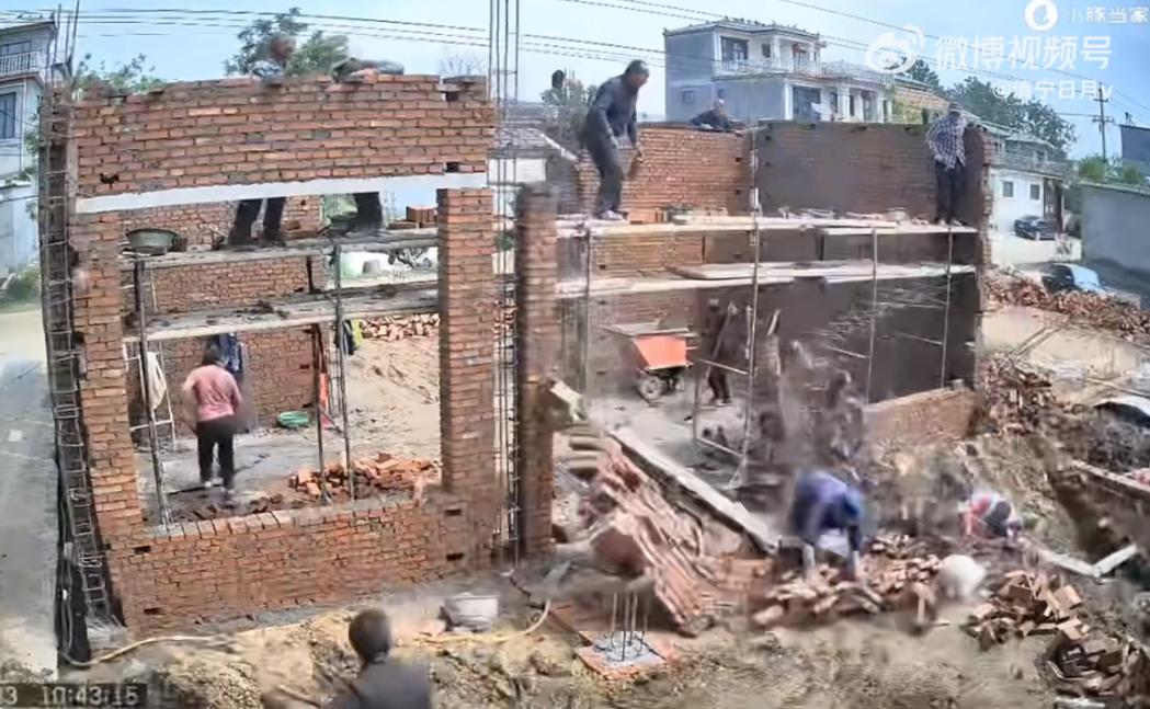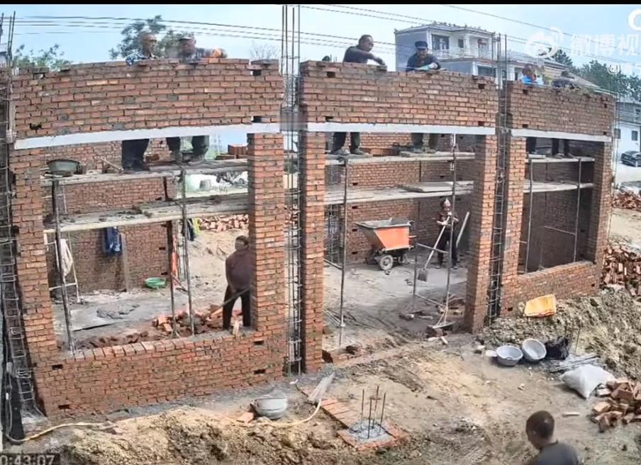 河南农村一处自建房突然倒塌,看这个头重脚轻的结构,就明白不要轻易相信农村的老师傅,他们没有任何建筑的结构和力学常识。这么明显的头重脚轻,房子不倒才怪。他们应该是为了赶工期,先砌墙,再浇筑支撑的柱子。可结果是砖墙倒了,人摔伤了。压根没省到工期,反而造成了更大的损失。虽然农村建房只有两层,承重不大,最好还是先浇筑好承重的柱子,等结构坚固了再来砌砖墙,千万不要图省事打乱盖房的顺序。