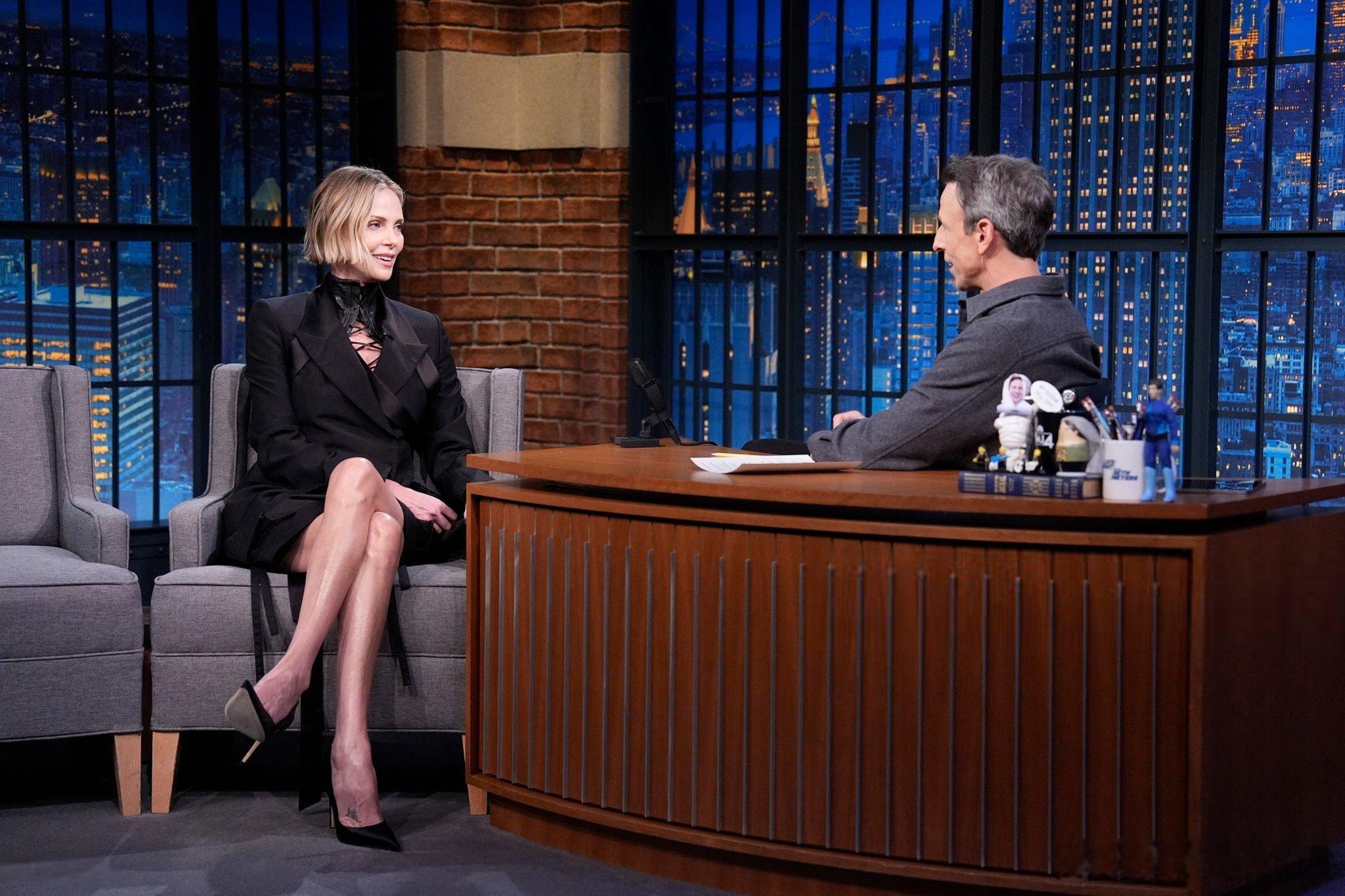 Charlize Theron查理兹塞隆前两天做客《Late night with Seth Mayers》节目,为Netflix的新片《巅峰猎杀》进行宣传
