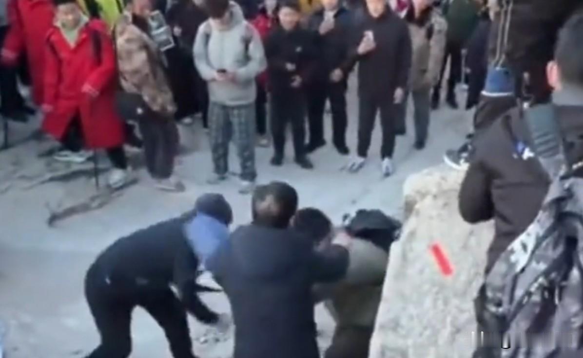 4月25号一大早,不少人在山顶等着看日出,结果就因为争抢拍照的位置,几名游客当场吵了起来,接着就推搡扭打,场面一度乱得不行。