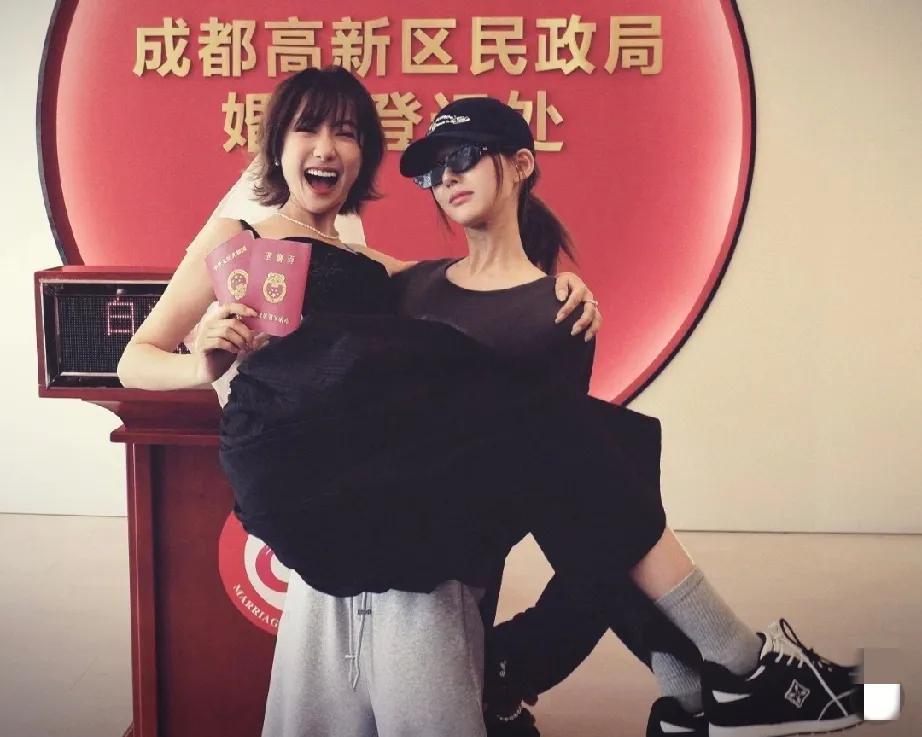刚看照片还以为赵露思结婚了,她和闺蜜魏笑一起在民政局举着结婚证合照,原来是她闺蜜