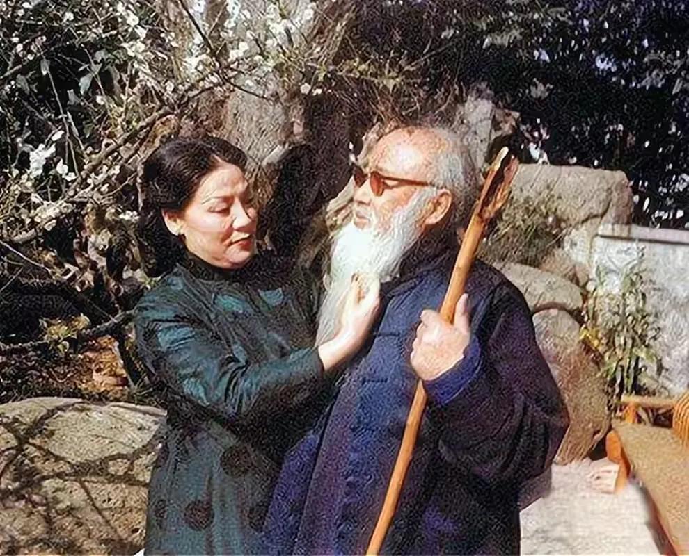 张大千和30岁四姨太合影,四姨太貌美如花,气质非凡,肌肤圆润