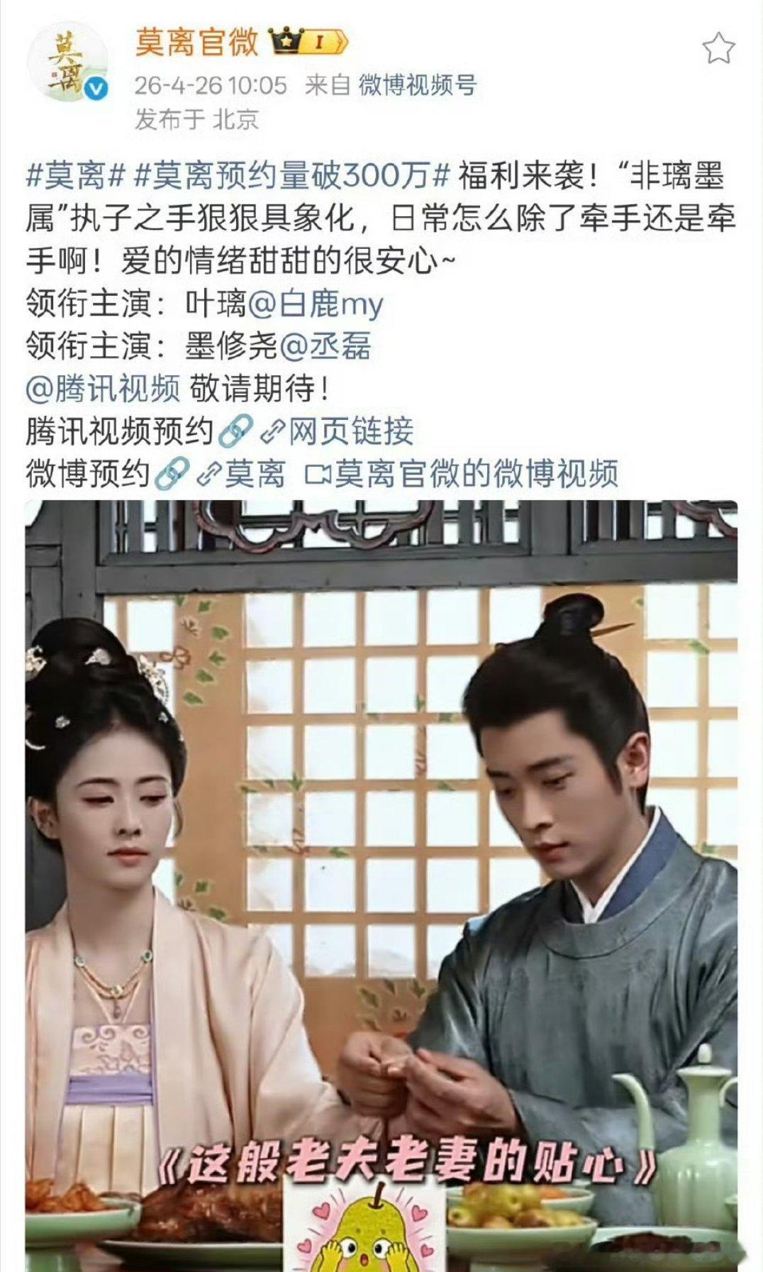 白鹿、丞磊《莫离》预计6.8播出!