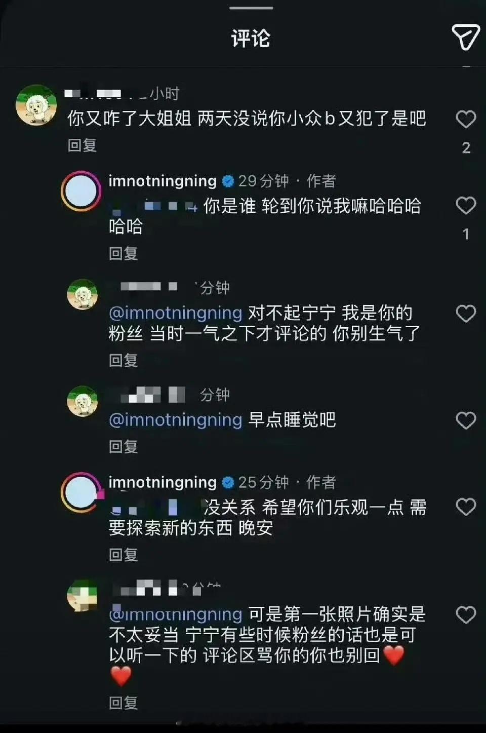 宁艺卓ig发布多组不适图,杂志照非宁艺卓本人,但属于搬运到微博都无法显示的程度😓评论区粉丝不满,作为爱豆不应该分享这种风格的照片;三千赞的英文不回复,依旧只挑中文回怼,宁艺卓说这是艺术杂志,轮不到外人指责。但是宁艺卓有很多粉丝是未成年人吧,这样真的好吗?宁艺卓回怼粉丝 宁艺卓真正回应粉丝的语气