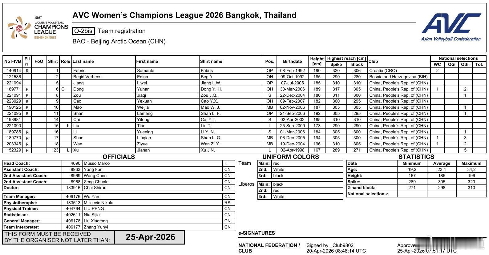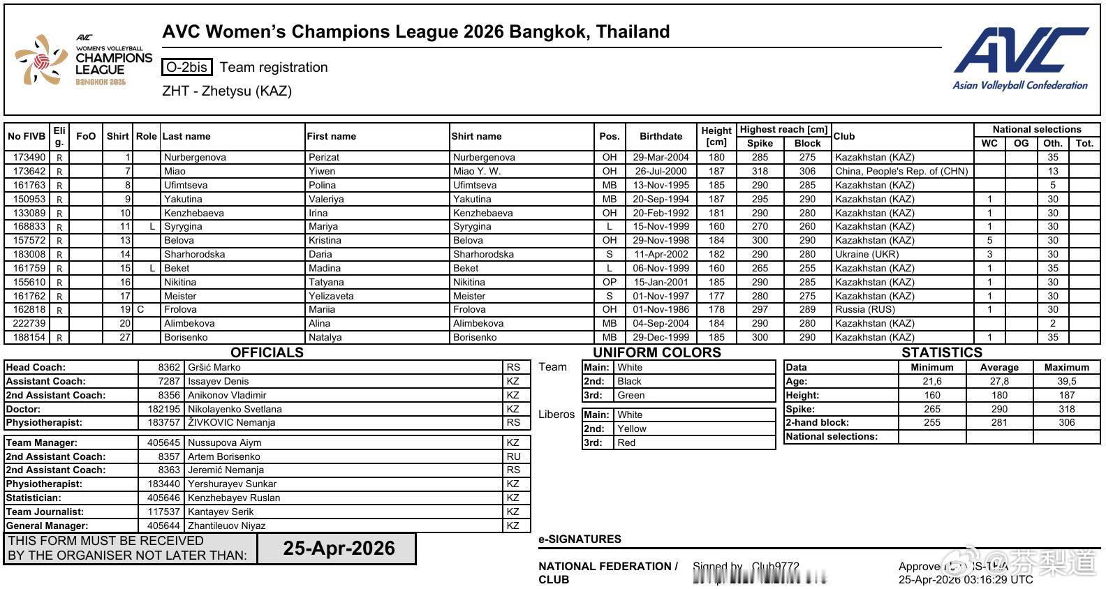 国际排坛动态北京北冰洋女排 比赛日赛场已准备就绪,舞台已搭建完成。我们非常激动,亚排联(AVC)2026年女子俱乐部锦标赛今天正式在曼谷开赛!16:00 中国北京北冰洋 vs 哈萨克斯坦杰特苏