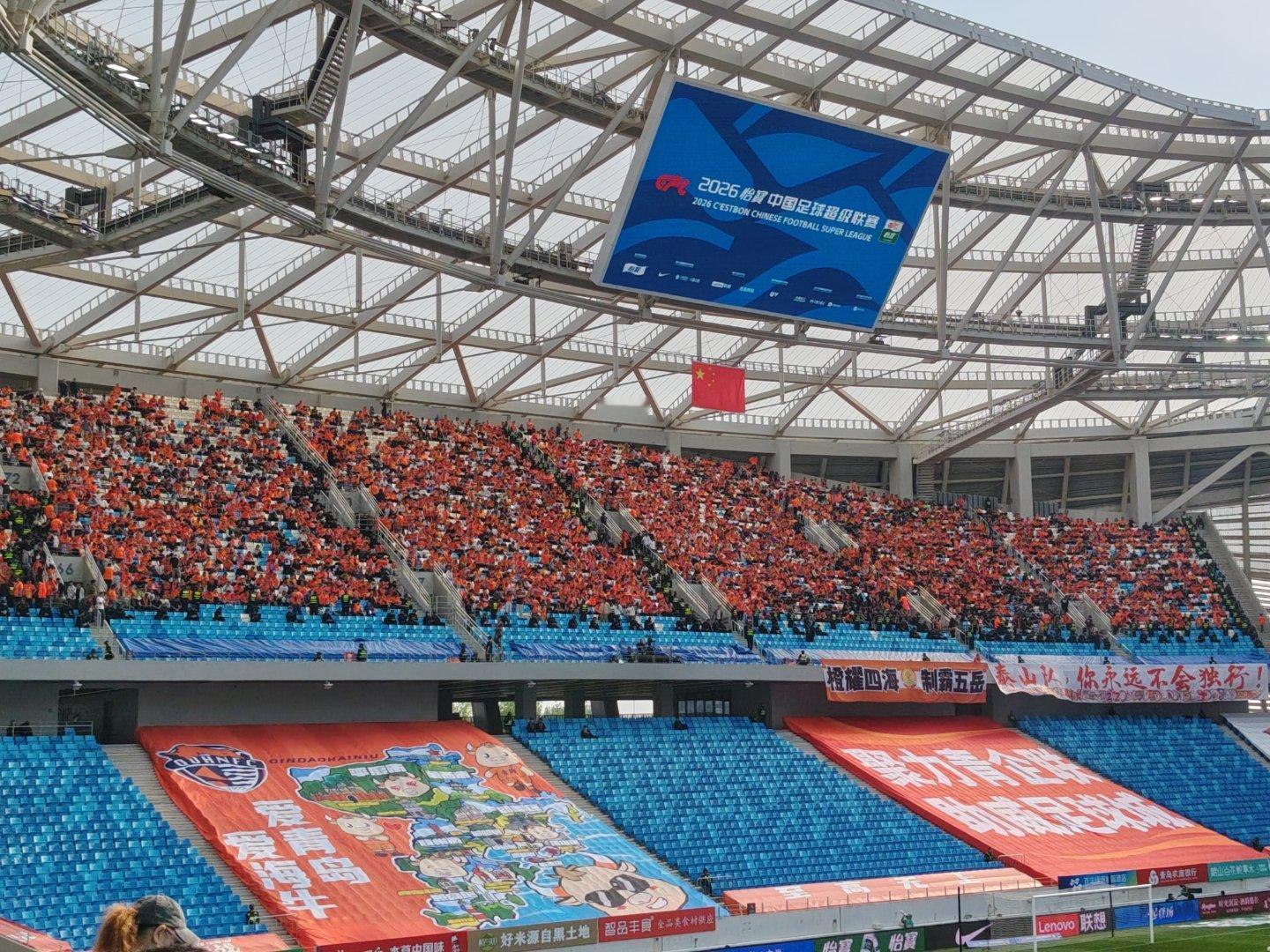 2026中超联赛青岛海牛vs山东泰山 鲁蜜们在青春足球场客队看台就位了。 青岛·