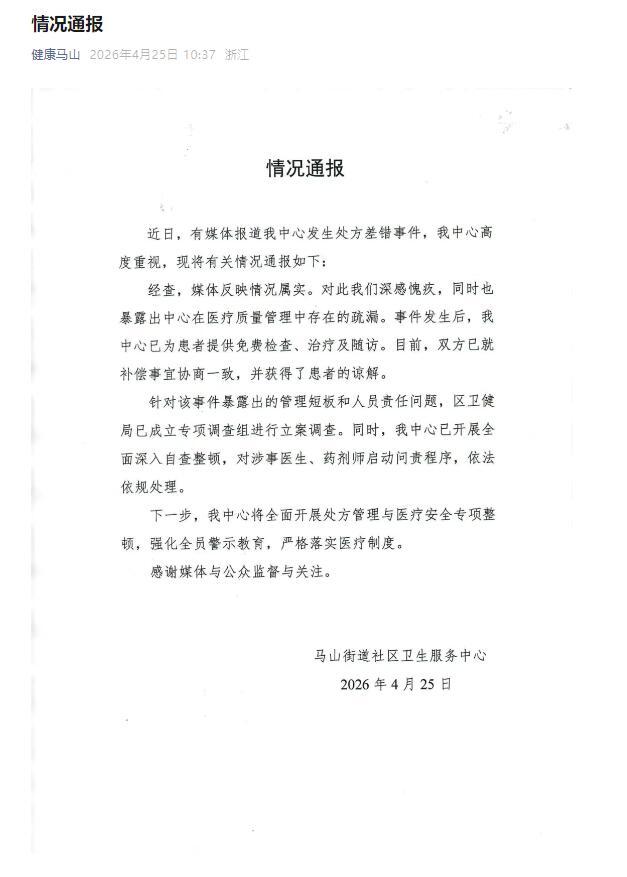 不过,光赔偿肯定不够。区里的卫健局已经专门成立了调查组,要彻底查清楚。卫生中心自己也启动了内部整顿,对开错药的医生和发药的药剂师都要追责,按规矩处理。
