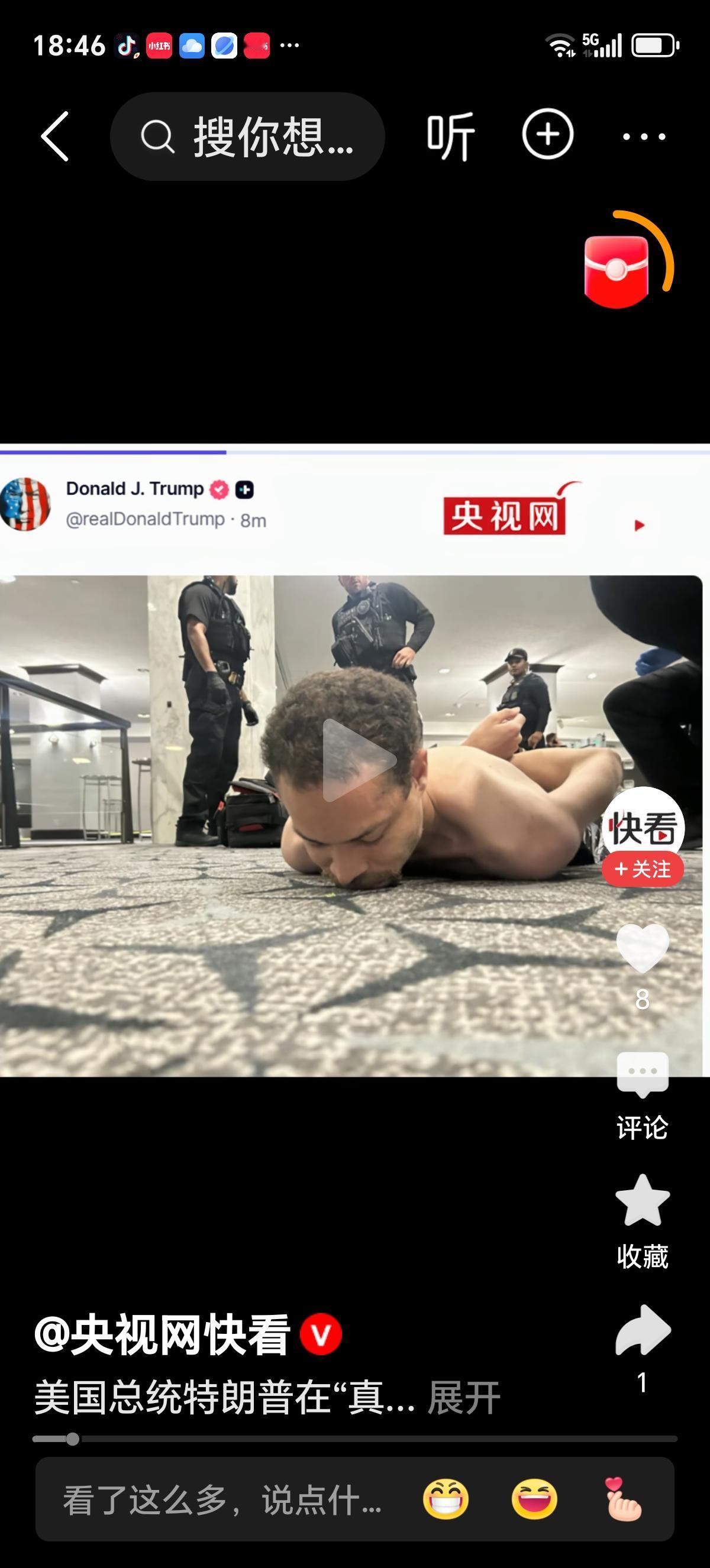 生死瞬间,特勤局特工反应神速,一边火速架起特朗普和梅拉尼娅,在层层护卫下紧急疏散撤离;一边拔枪迎击,当场与嫌犯展开对峙 !混乱交火中,一名特工不幸中弹,万幸身穿防弹背心,躲过致命一击,死里逃生!