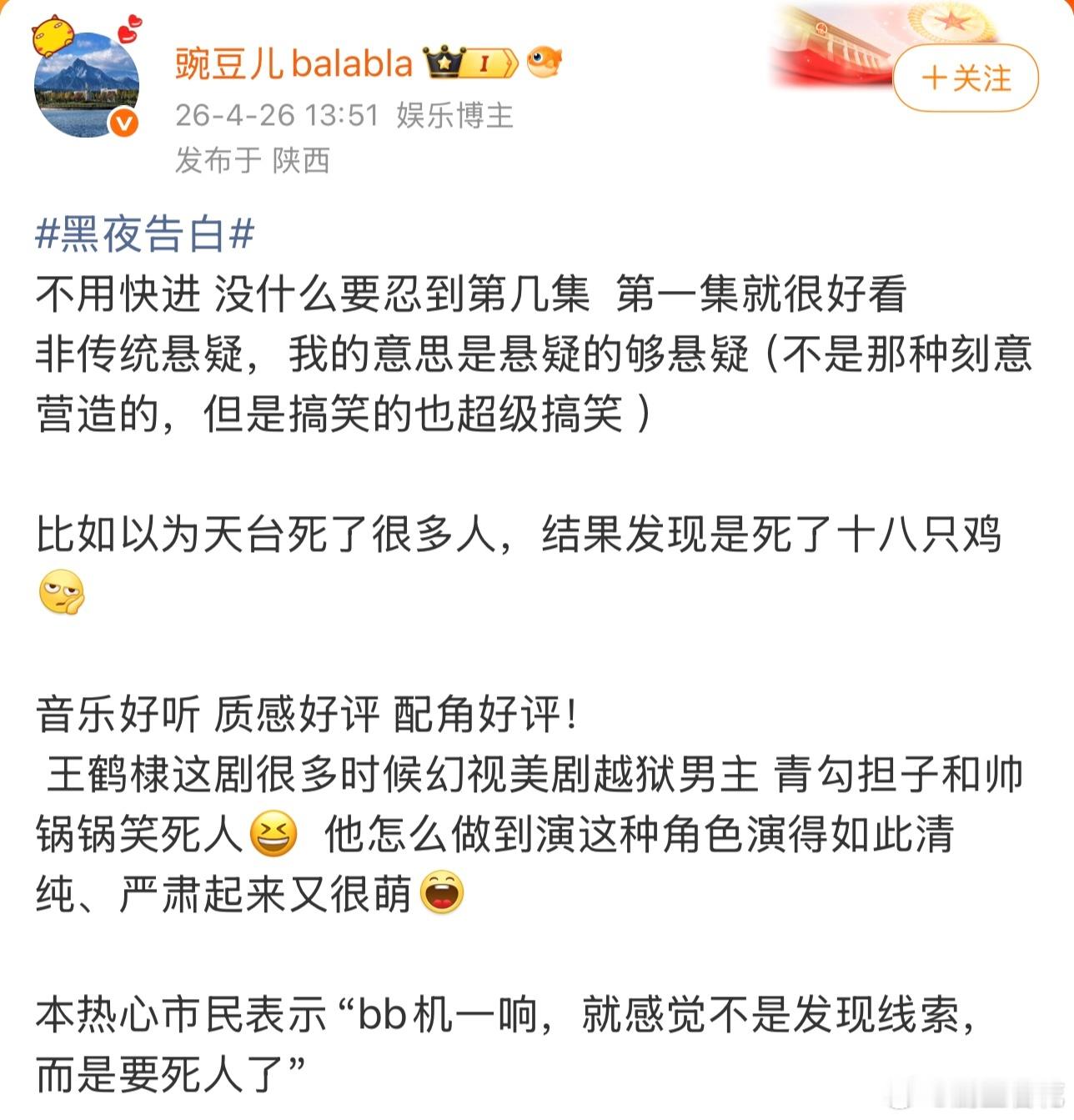黑夜告白首播口碑 全员演技在线不拖后腿👏剧情节奏把控精准,师徒探案设定新颖有趣,悬疑氛围拉满,越追越上头~