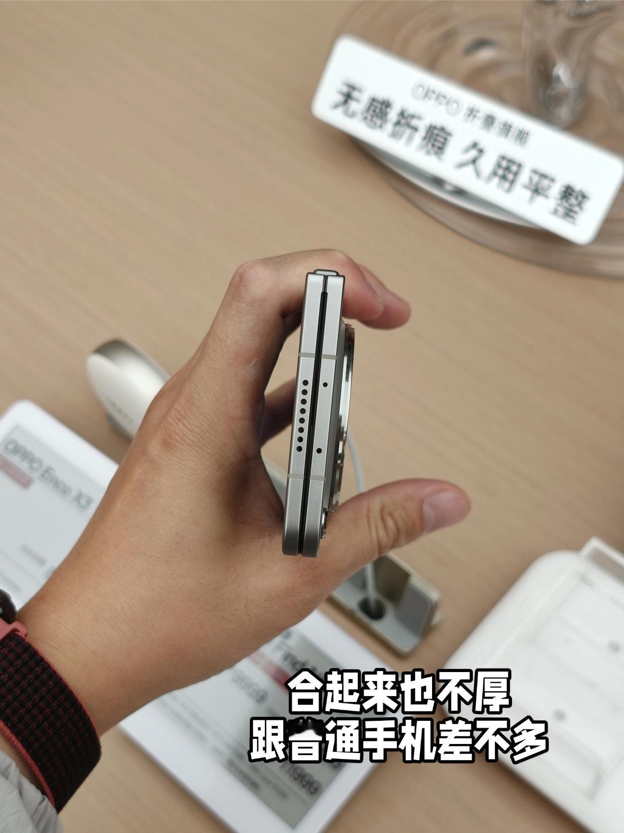 🤔而且OPPO的折痕确实基本没感觉诶,看着没那么膈应,手指划过去不注意也没感觉。整体的重量控制也不错,合起来跟普通手机差不多,听说哈苏拍照也不错,感觉配置是好点哦?