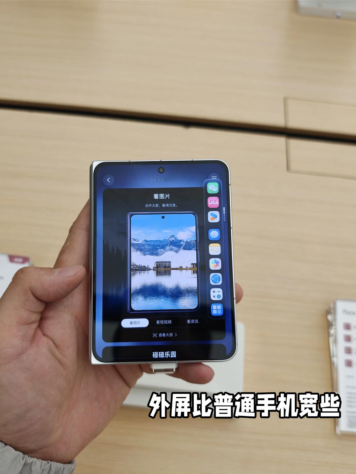 周末专门去线下店摸了一把,华为的握持手感确实不错,折叠状态下外屏比较宽,但也能单手用,展开后比例好像平板,看剧刷视频应该都不错。
