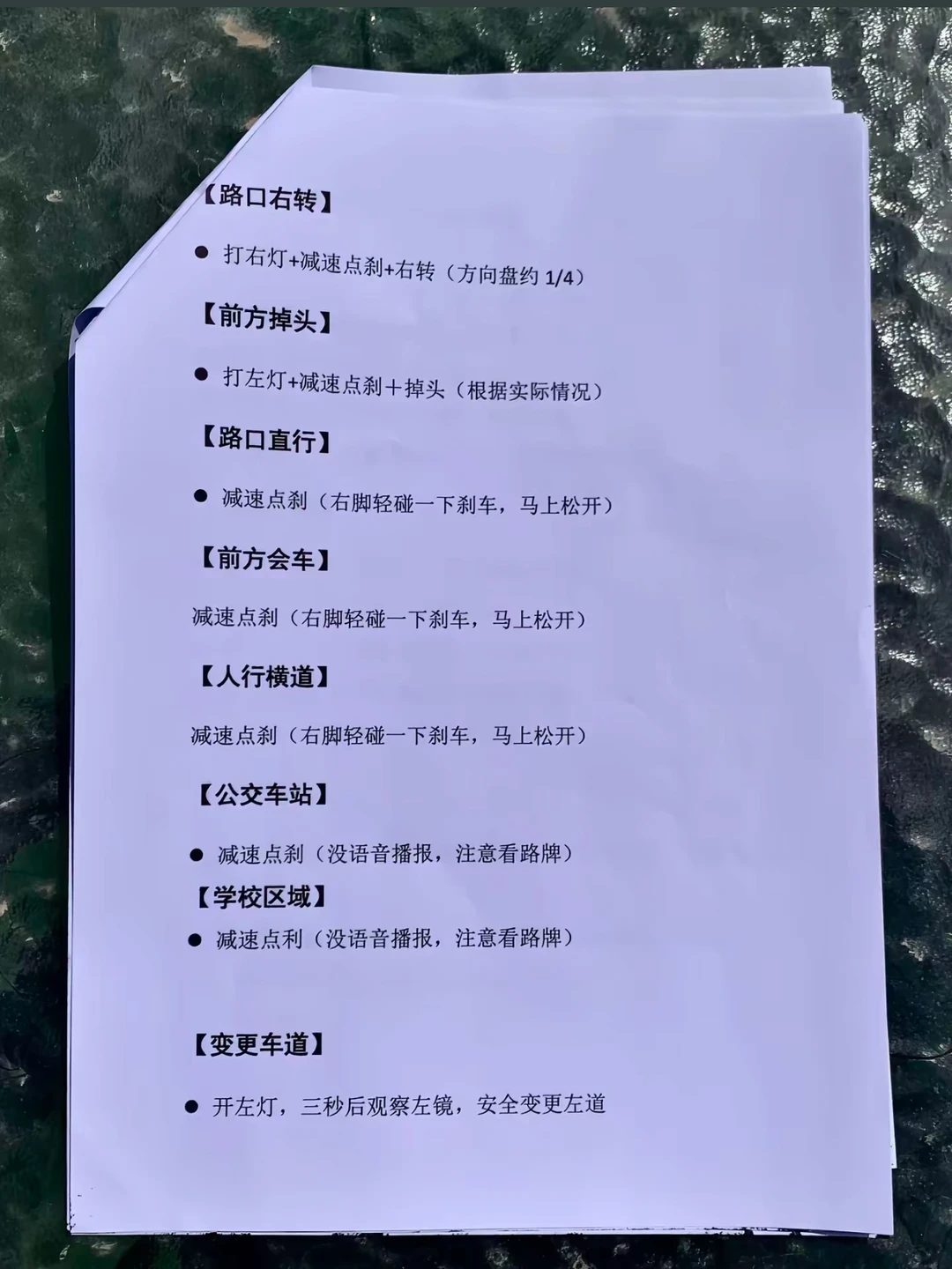 >路口直行:减速点刹前方会车:減速点刹人行横道:减