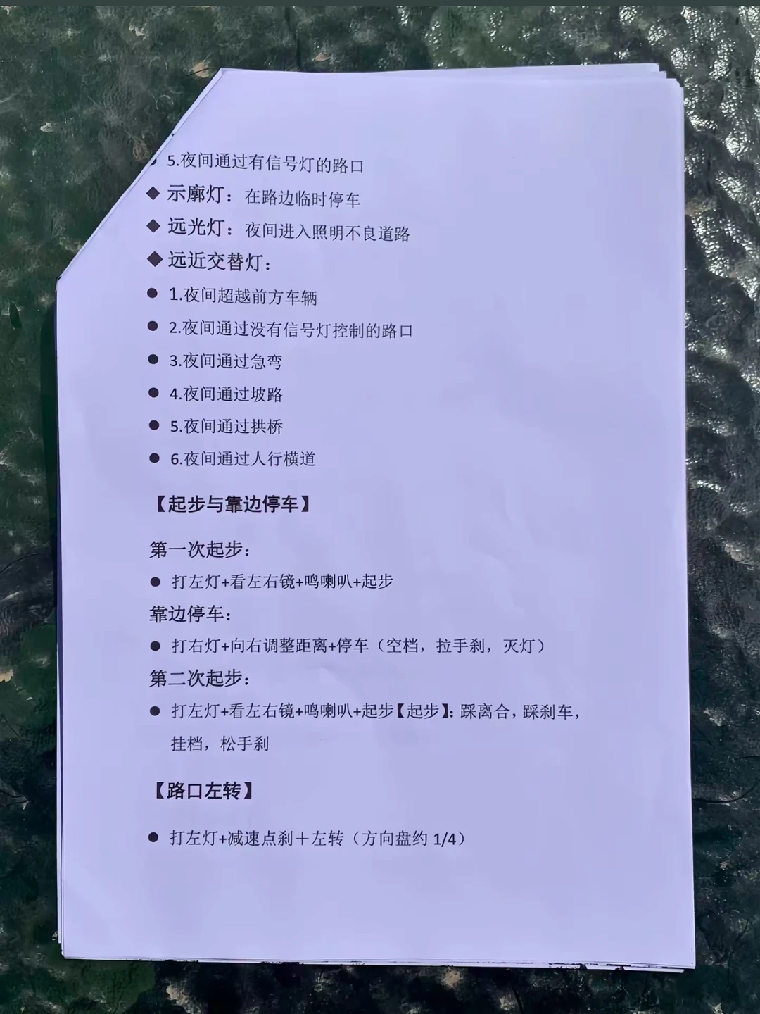 》起步:开左灯,看镜子,鸣喇叭,起步