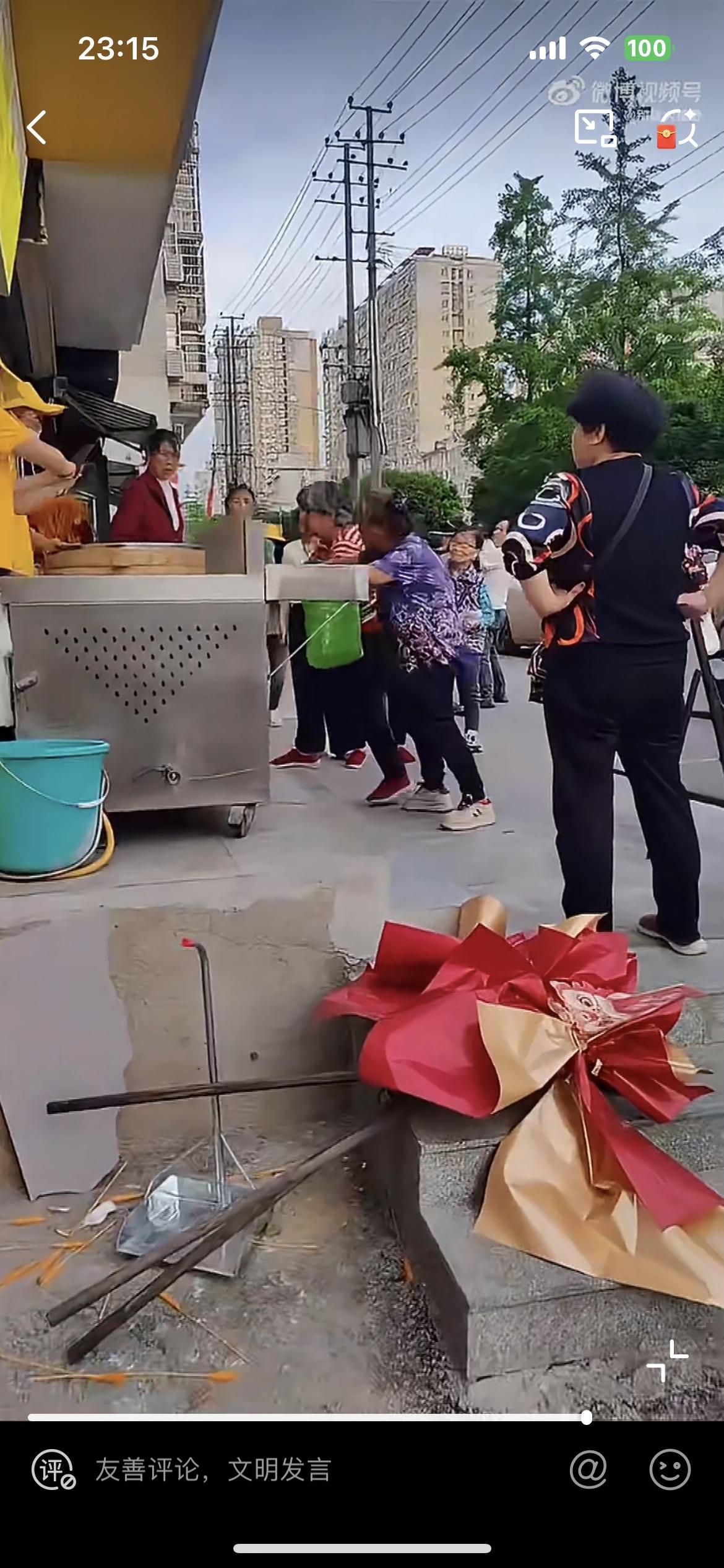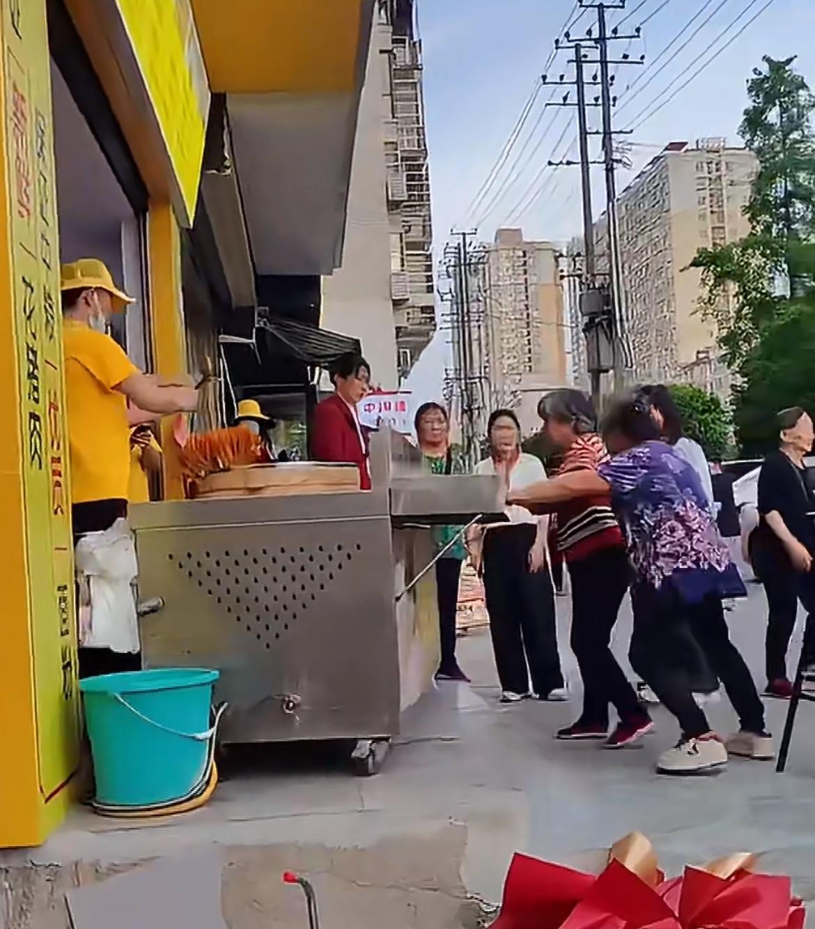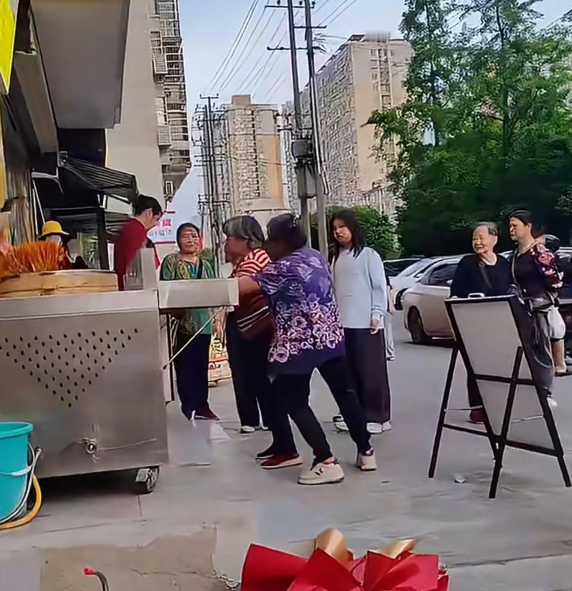 真的不能惹老太,她们生气了真的会掀桌子。一个包子店新开业搞活动,免费送包子,活动吸引了很多的老头老太,不一会几屉包子就全部送完了,排在后面的红衣老太没有拿到包子,非常的生气。找店里面的小伙小妹理论,为啥她没有包子?辛辛苦苦排了这么久,认为包子店在骗人,叫他们赔包子。小伙小妹只能好心安抚,叫老老太明天早点来,老太不干了。直言一定要他们赔包子,否则不走。老太越说情绪越越激动,最后开始动手掀摊子。让店里的小伙小妹非常的无奈。哎,遇到这种占便宜没够的老太,根本没法沟通啊。