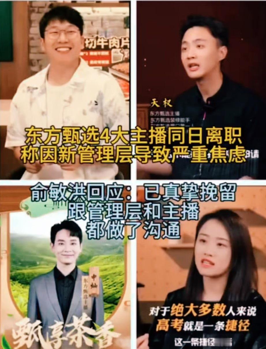 俞敏洪坦言公司管理方式出现偏差 俞敏洪你就等着后悔去吧。自几当家网红集体离职,你口口声声说认真挽留了,很无辜无奈的样子,真的太虚伪。要真是优厚待遇挽留,我就不信留不住,还是你觉得他们不重要,没给到足够的尊重。话说现在的老板都不尊重人才,觉得什么人都能把工作做好,真是离了大谱。