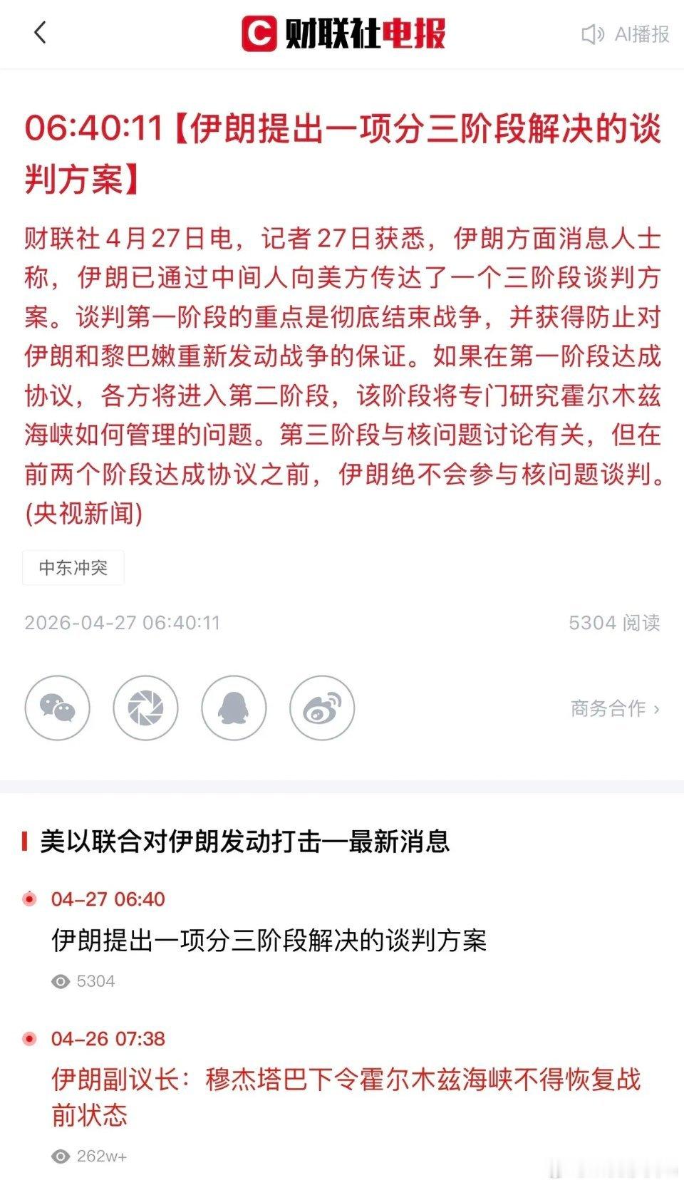③第三阶段则是关于核问题谈判(这是基于前两个问题都达成协议的情况下进行)