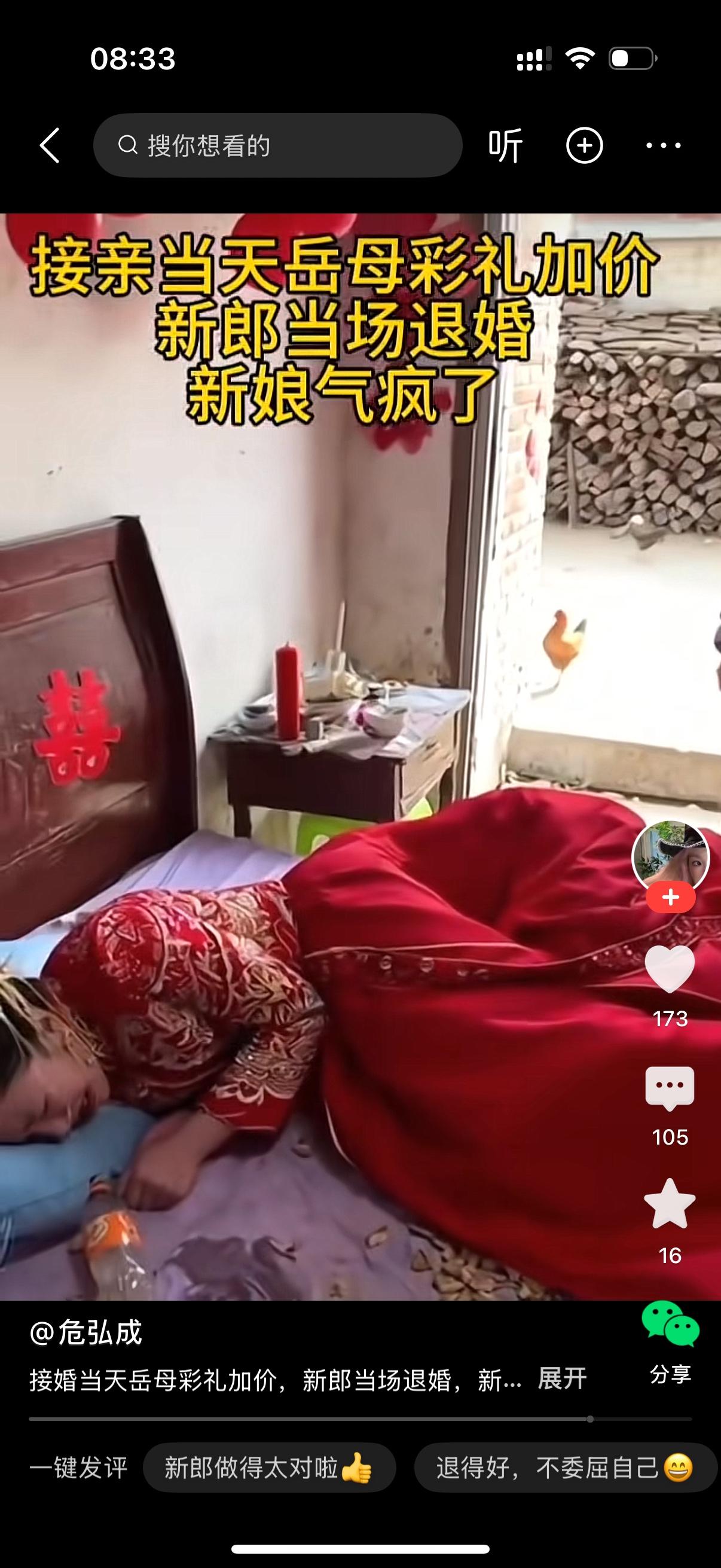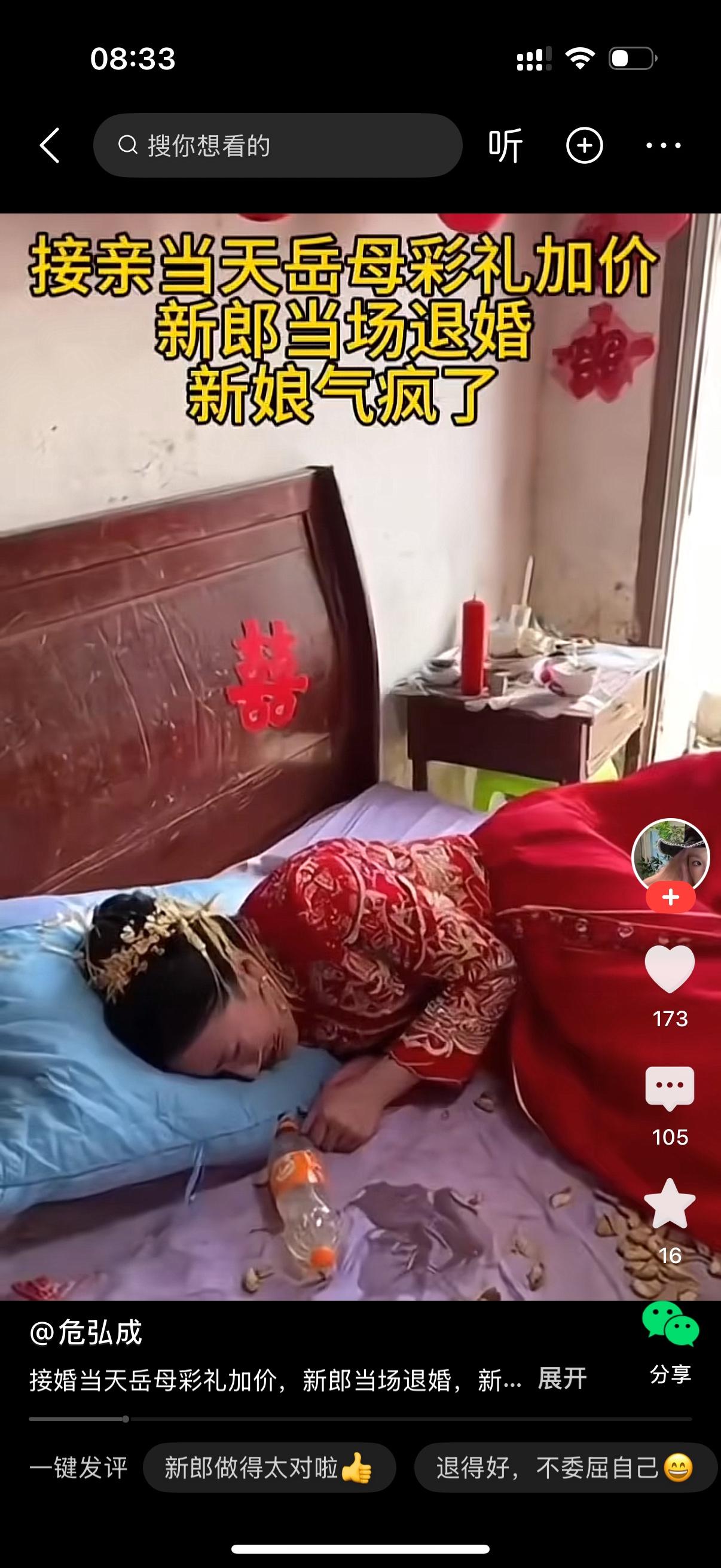 接亲当天岳母加价彩礼,新郎当场退婚。新娘回到家躺在床上默默地哭泣。床上瓜果洒落一