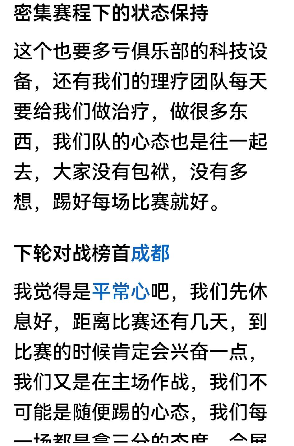 陈晋一还说了题外话,“多亏了俱乐部的科技设备”,感谢医疗团队每天的治疗,放下心理包袱。再看一些豪门伤病满营,陈晋一的说法和申花的做法,真值得学一学。