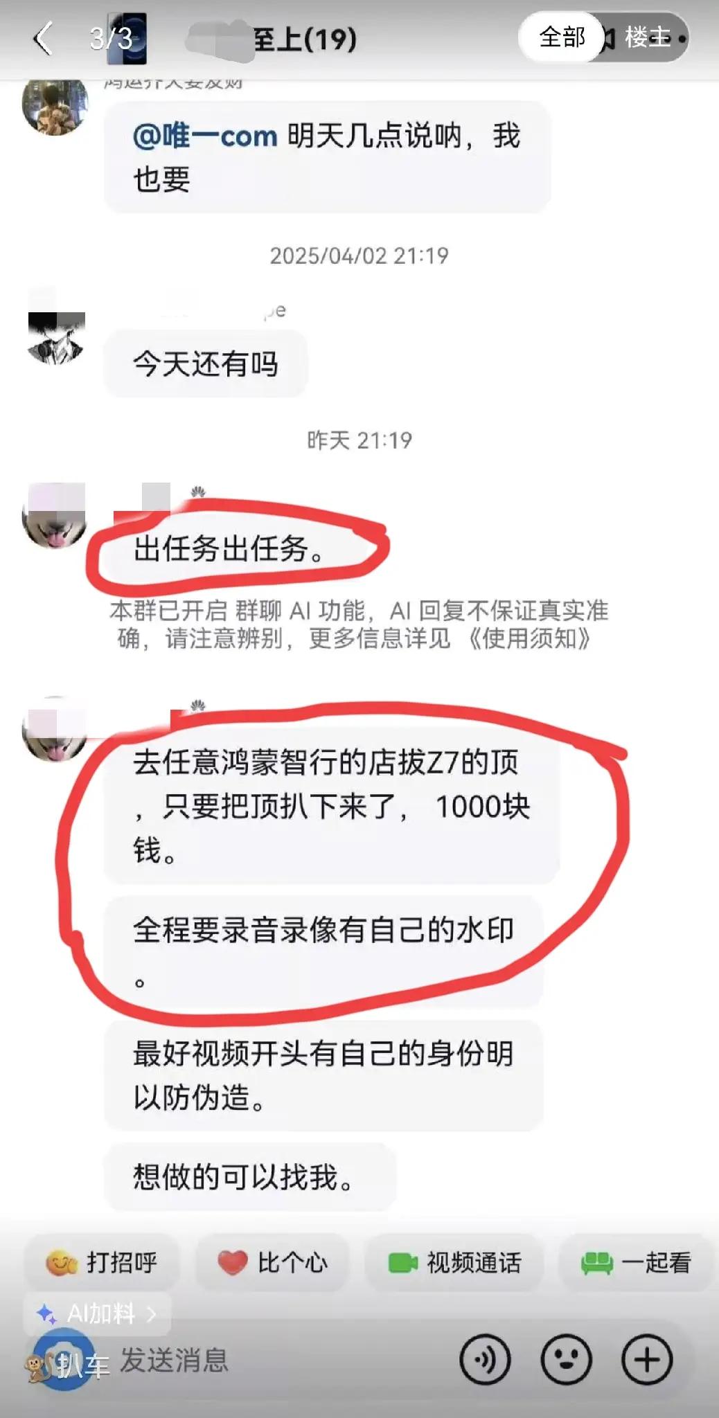 到底是谁这么明目张胆的搞破坏?看到有网友晒出了群聊天记录,看起来是有组织的行为。看看这几个群,有出任务的,有要求抓紧删除视频的。
