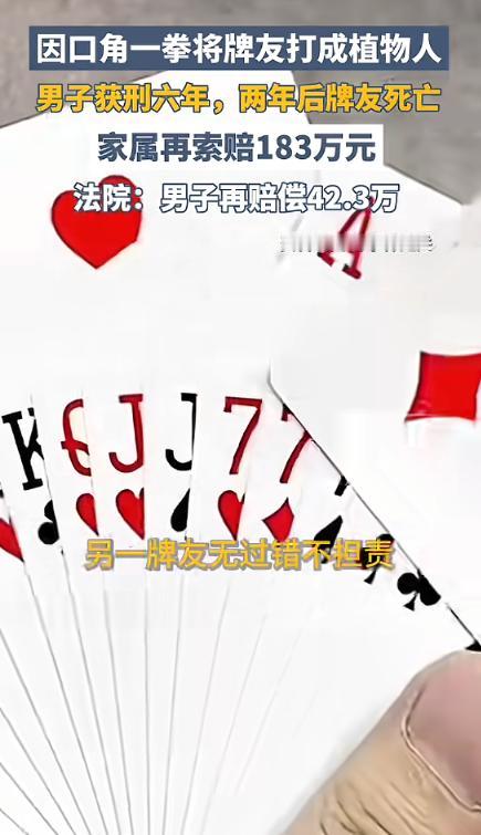 (信息来源:封面新闻《因口角一拳将牌友打成植物人,男子获刑六年 两年后牌友死亡,家属再索赔183万元》)