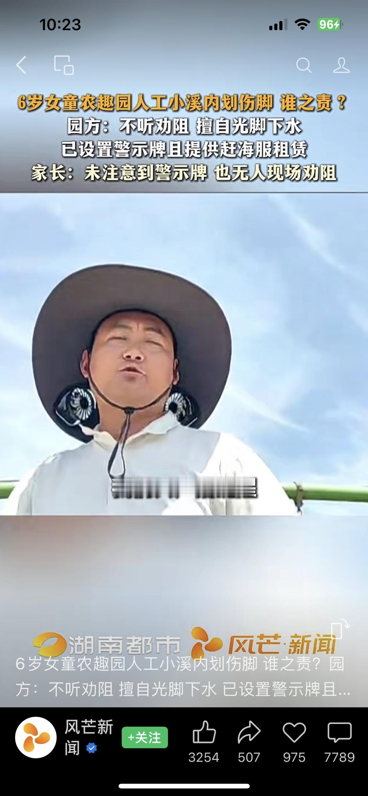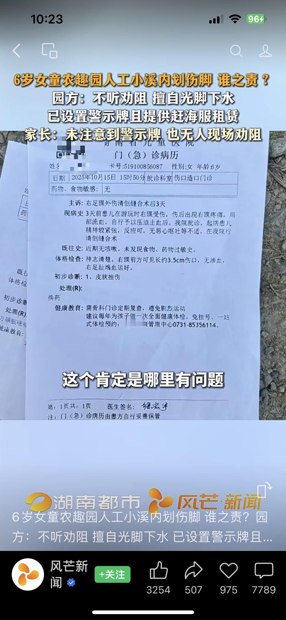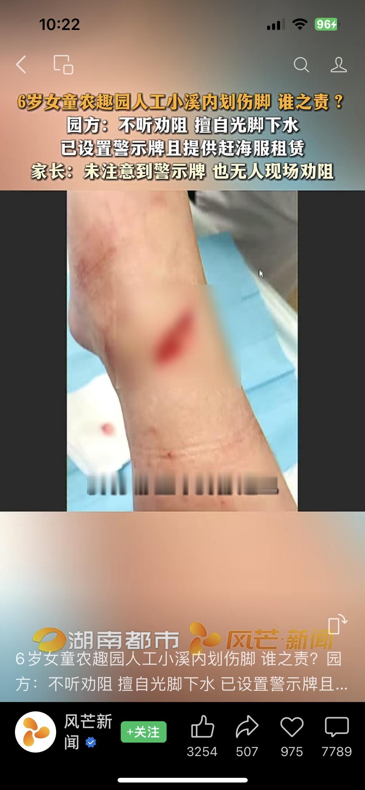 6 岁女童农趣园光脚下水受伤,家长找老板扯皮索赔。明明小溪沟旁边就有禁止私自下水