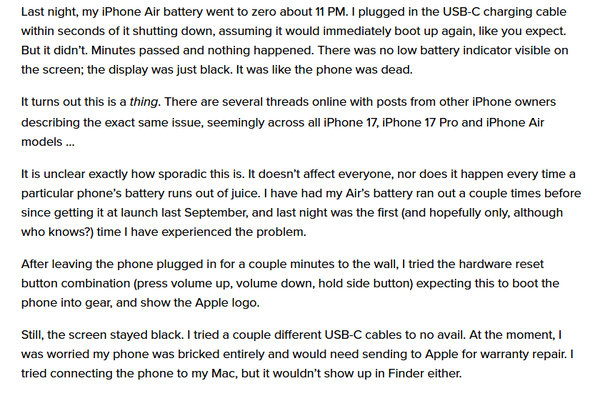 该问题并非普遍现象,不影响所有用户,也并非每次电量耗尽都会触发。目前暂无官方说明问题成因,相关在线社区已有多条用户反馈,描述情况一致。