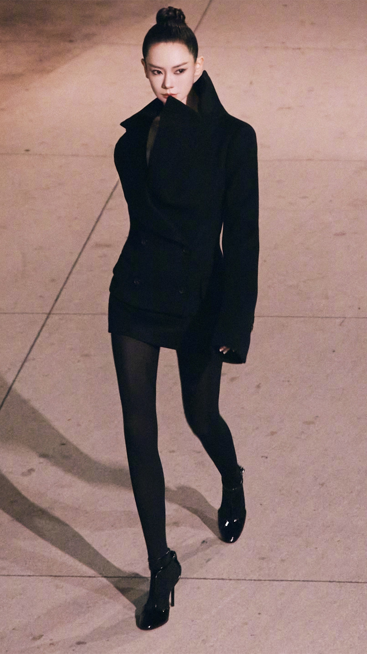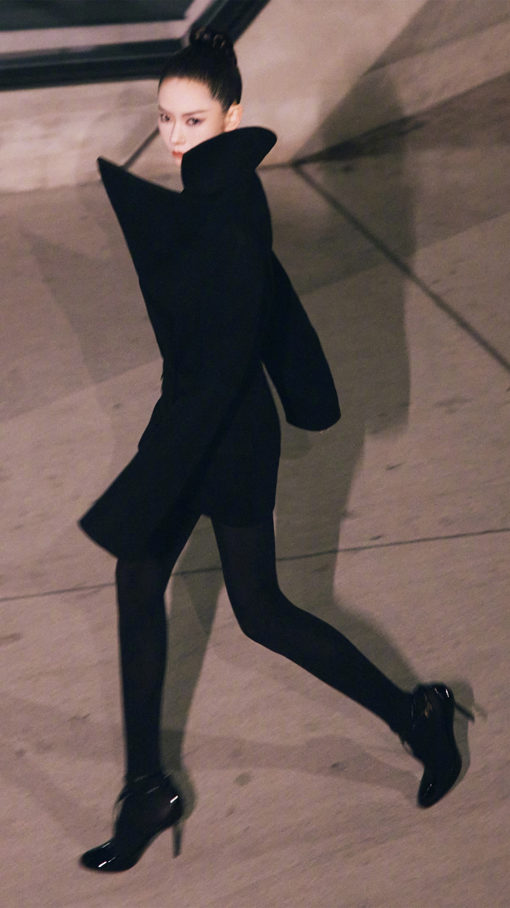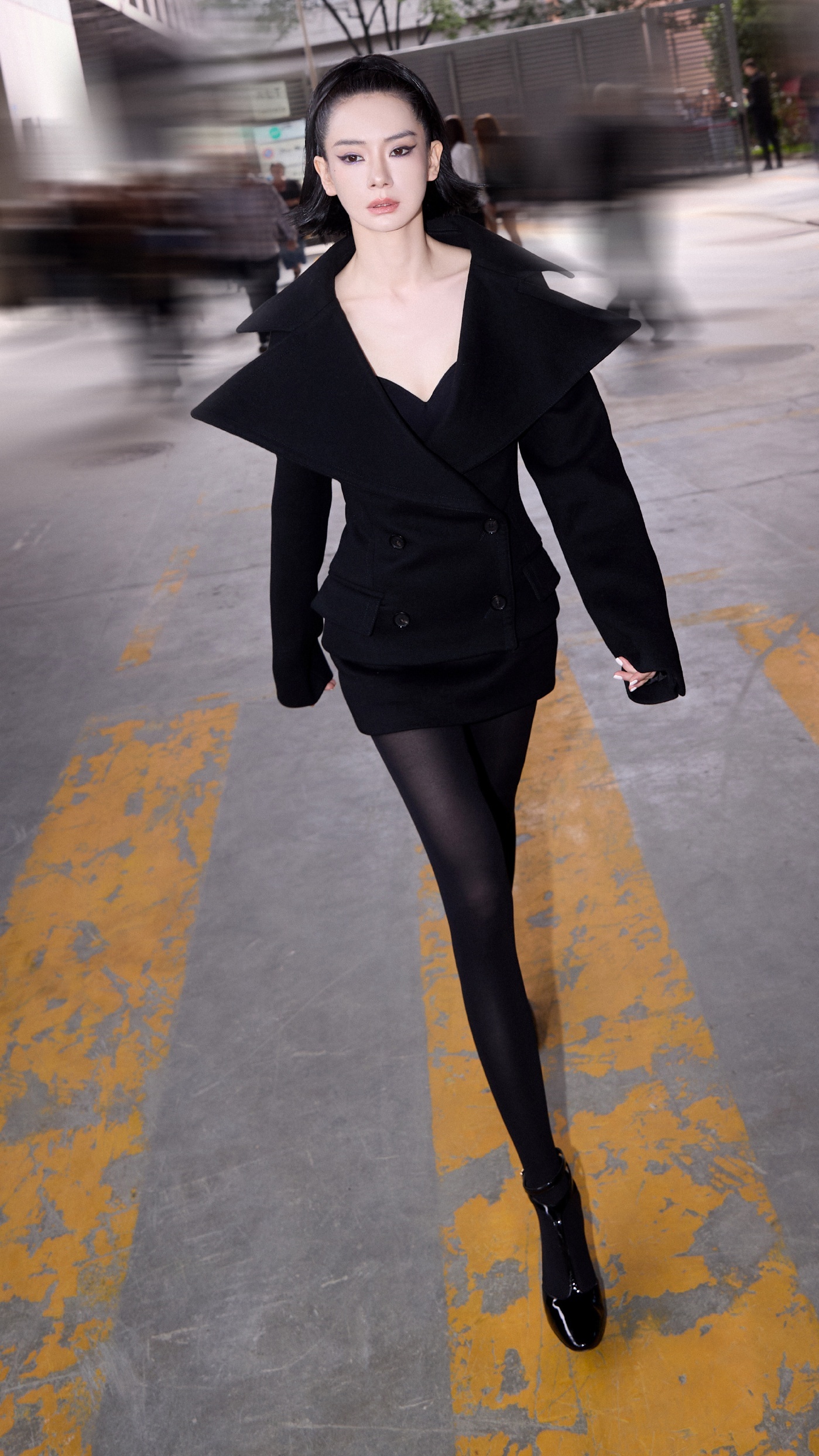 戚薇:丝袜穿搭美学,黑酷穿搭街拍大赏。戚薇