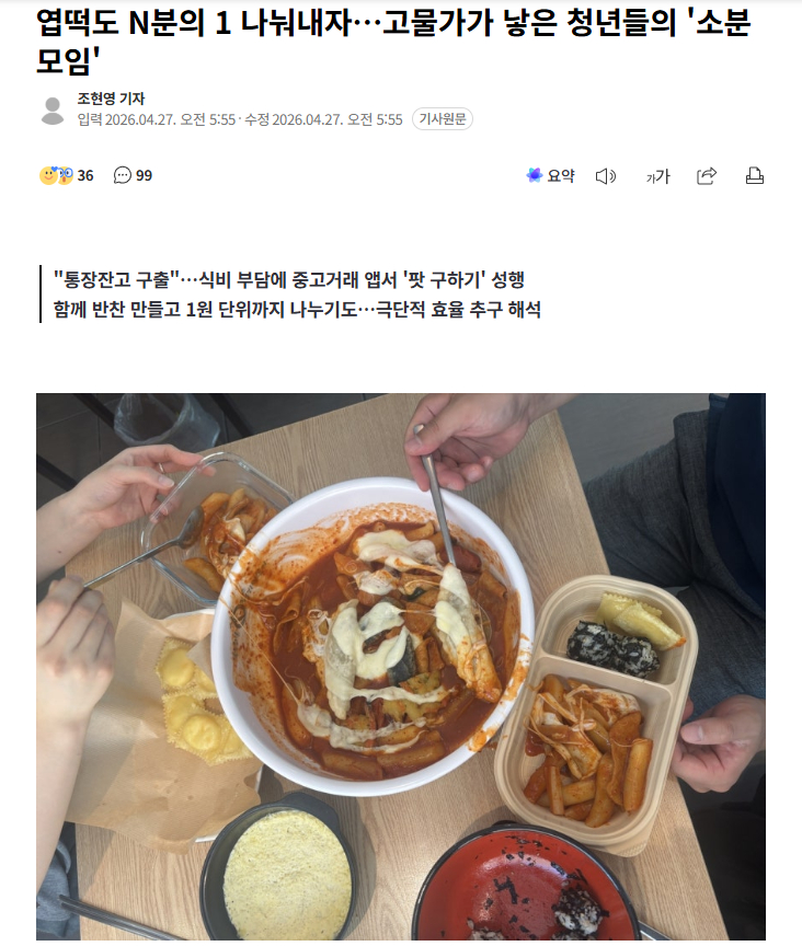 仁荷大学消费者学系教授李恩熙表示:"如果说参与仓储式卖场分买聚会的大多是操持家务的主妇,那么参与食物分享聚会则是对不断上涨的餐费感到有负担的年轻人。这体现了年轻人目标明确、追求效率的特点。"