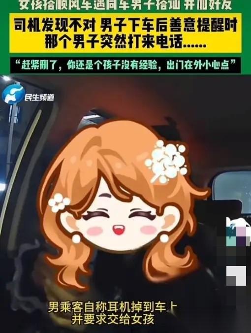 浙江,一女孩坐顺风车时,同车的男子主动搭讪,两个人聊的愉快,互相添加了联系方式。可是等男子下车后,司机赶紧提醒女孩,千万别信那家伙的套路。
