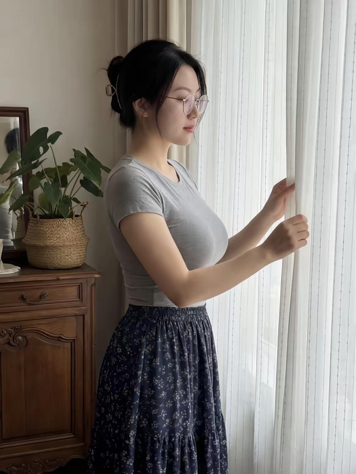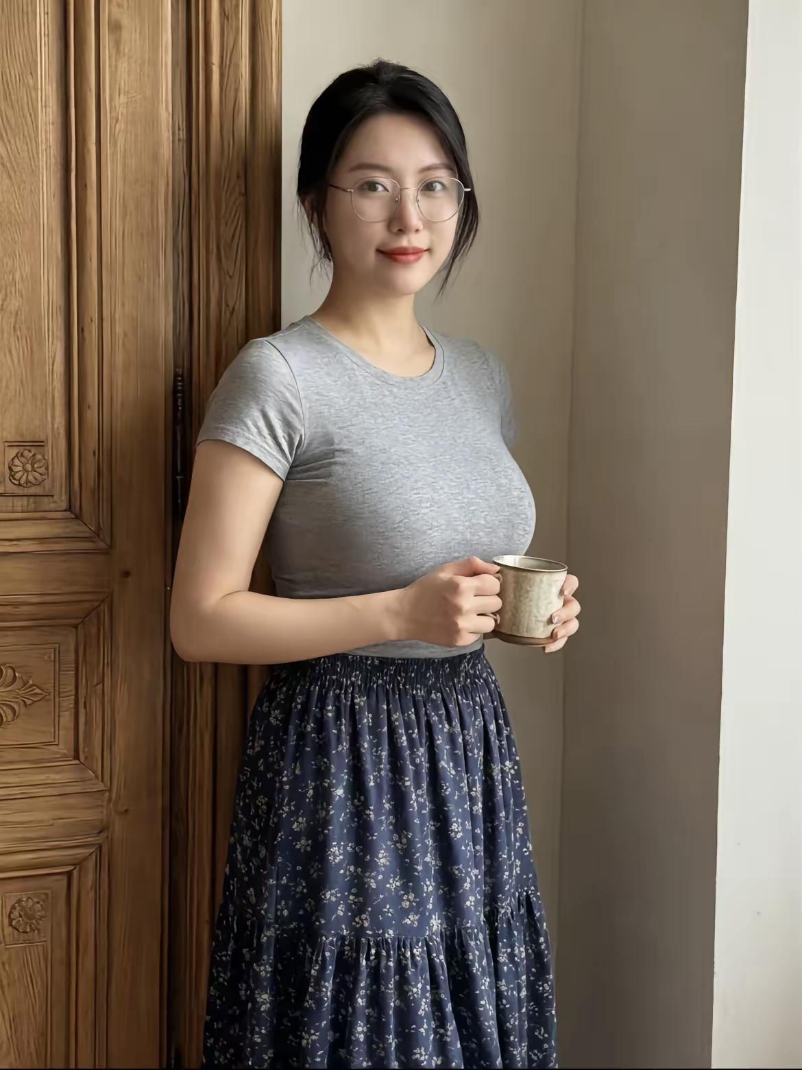 垂感好的A字裙型+低饱和色系,再搭配细框眼镜这类简约配饰,自带温柔居家氛围感,日常穿清爽耐看,完全不挑场合。