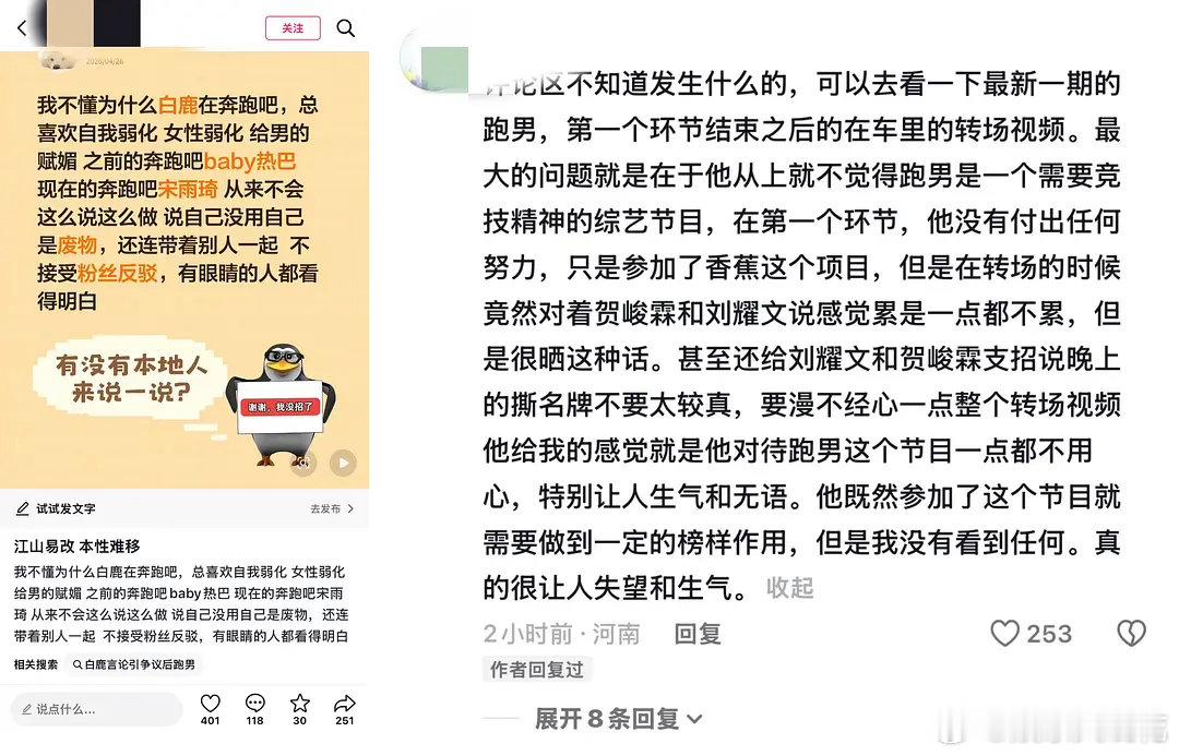 新一季跑男白鹿的言论引发下沉市场的初代跑男综艺粉的不满了…