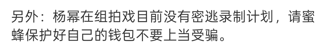 杨幂没有密逃录制计划 关于网传《密室大逃脱8》阵容,杨幂对接否认录制:杨幂在组拍戏目前没有密逃录制计划。还是期待《江山大同》吧~杨幂方否认录制密逃
