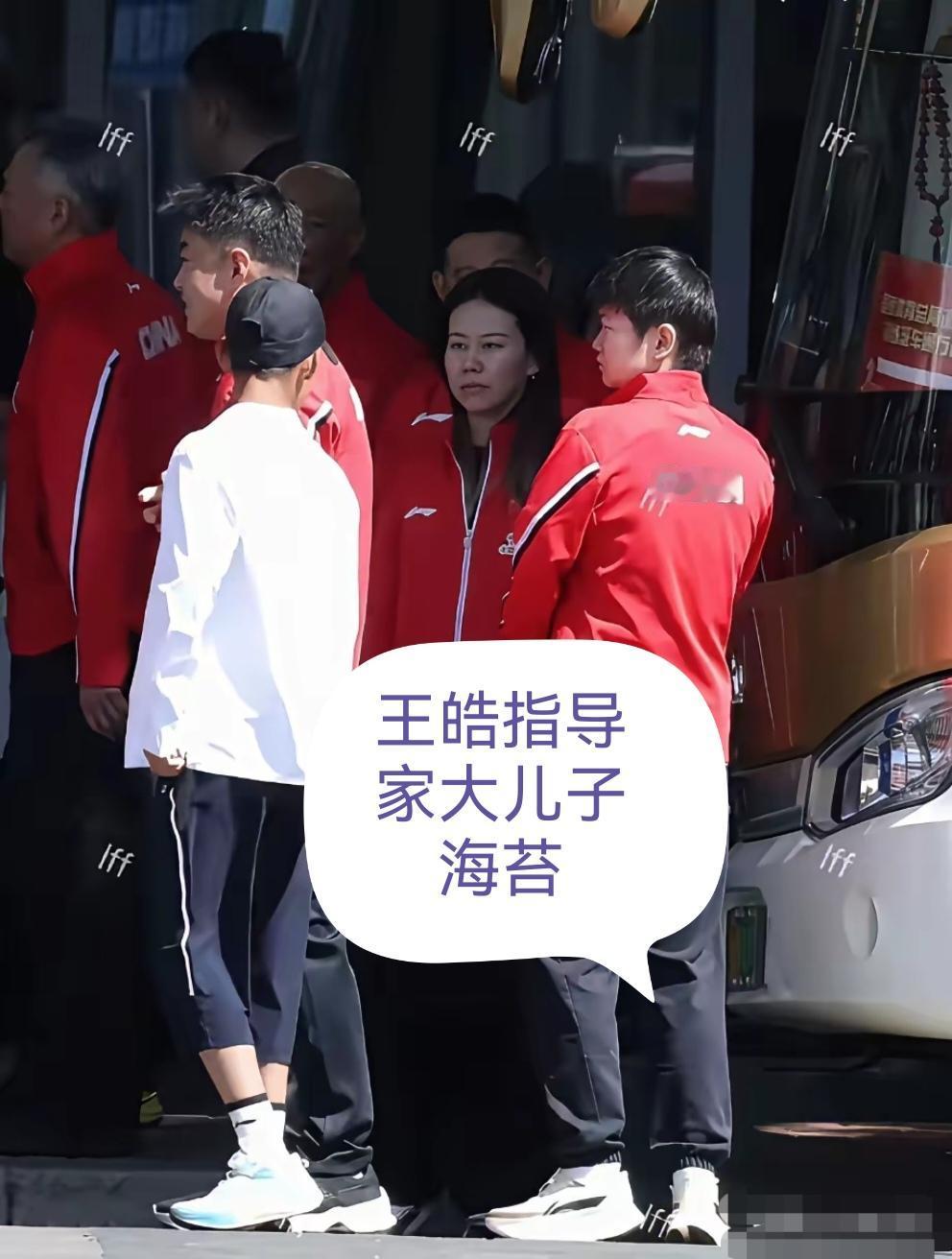 王皓指导家两娃特意送别爸爸带领的国家男队出征伦敦世乒赛,大儿子海苔比较稳重,小儿
