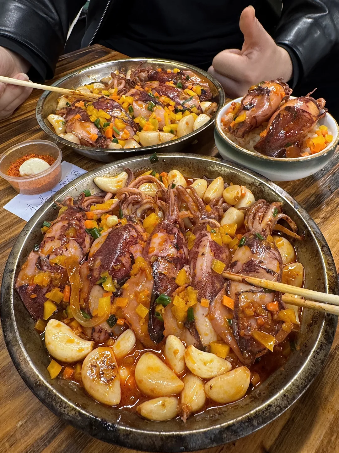 巨巨巨香!整只鱿鱼脆嫩弹牙,连蒜子都很入味真的一口惊艳。。还有椒麻黄喉鱼、山楂排骨、排骨年糕…吊打市中心那些网红店了!😭叫:三两好友)
