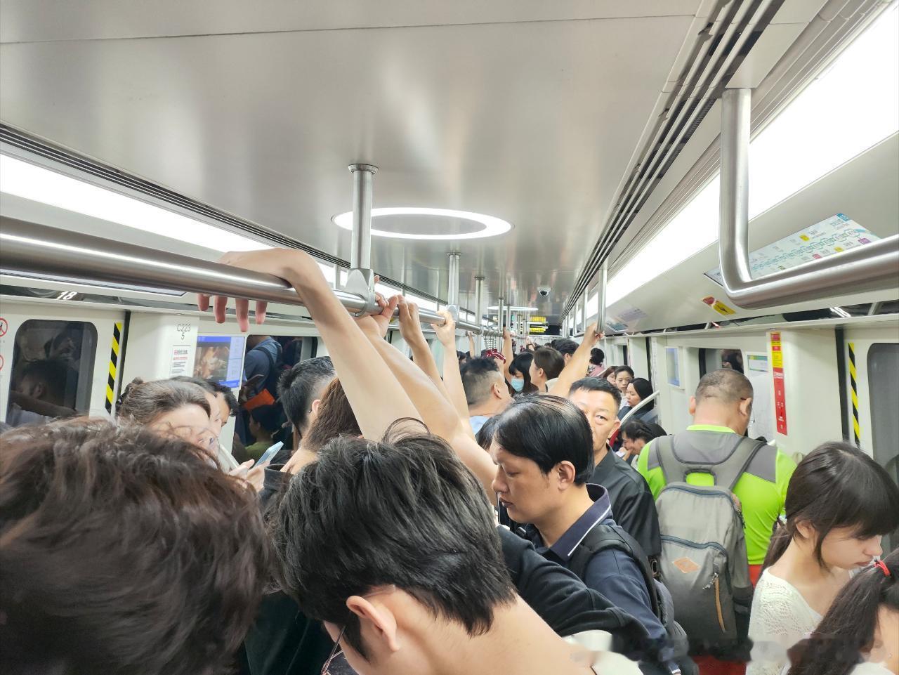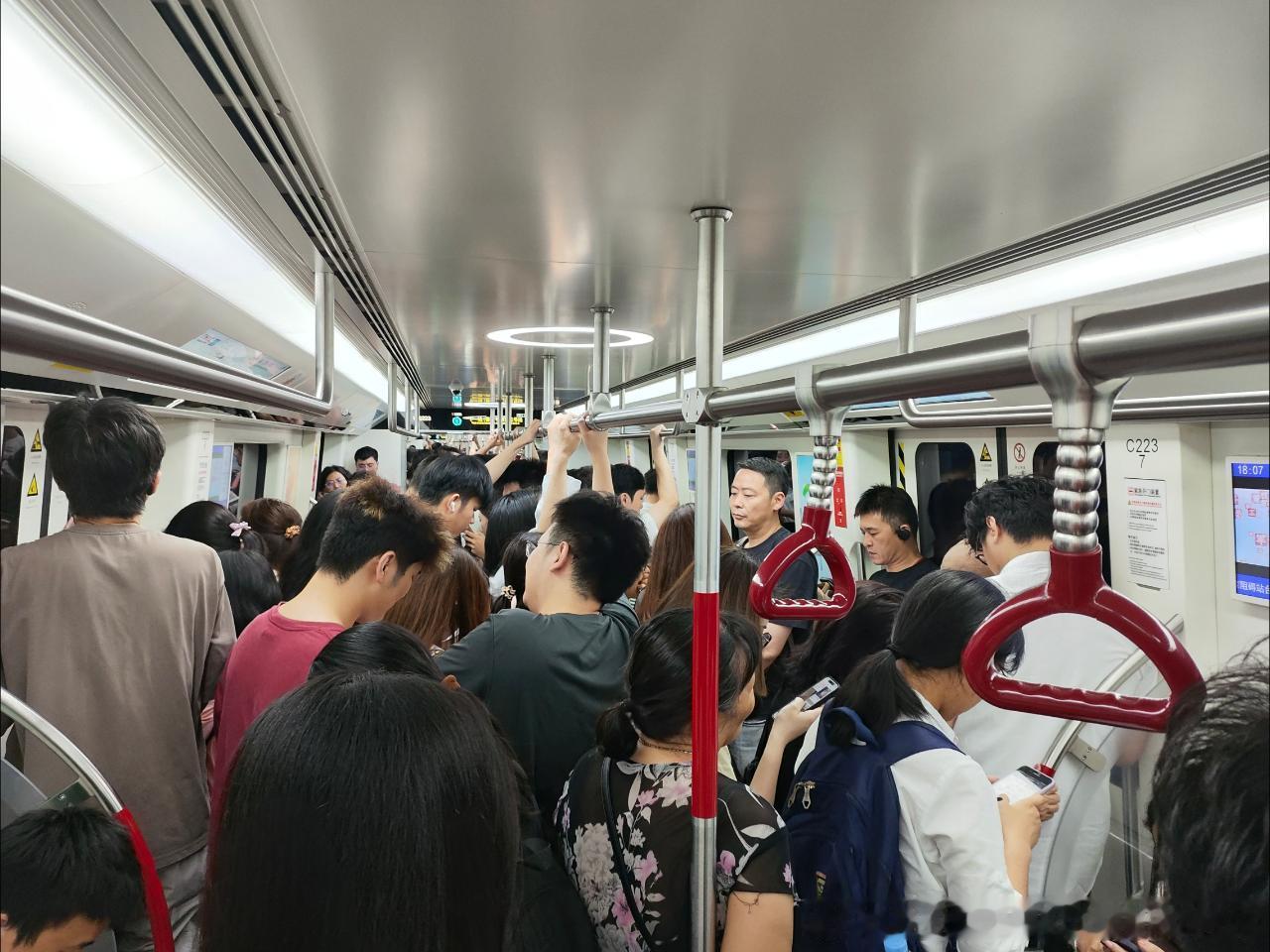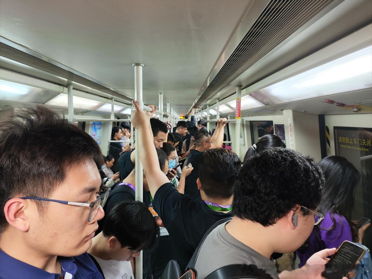 广州地铁网友:2026年4月27日(周一,广州阴,21-30℃)广州地铁晚高峰叠加第139届广交会二期最后一天客流画面投稿。图1为17:56广州地铁8号线(6A)新港东→琶洲客流画面;图2、图3为18:07广州地铁8号线赤岗→客村客流画面;图4为18:11广州地铁8号线鹭江→中大客流。——今日广州地铁总客流预计如何?摸上千万?