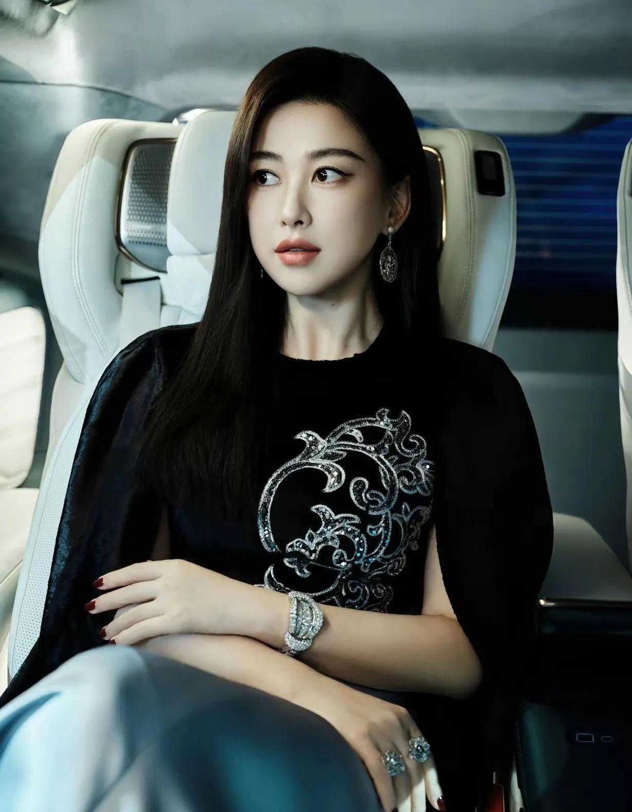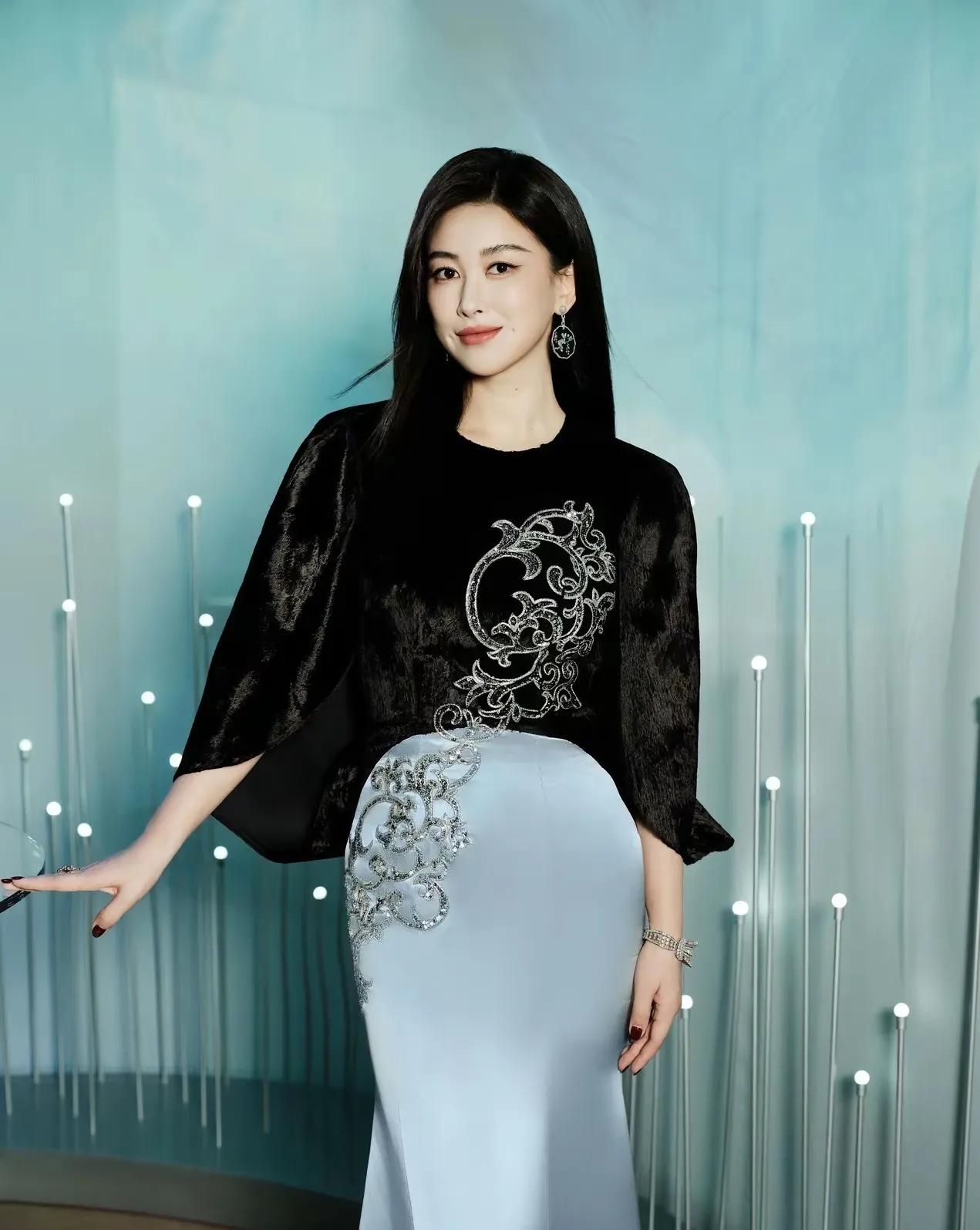 朱珠真的把新中式焊在身上了!这套黑银配色造型美到失语✨ 黑色丝绒斗篷上衣搭配