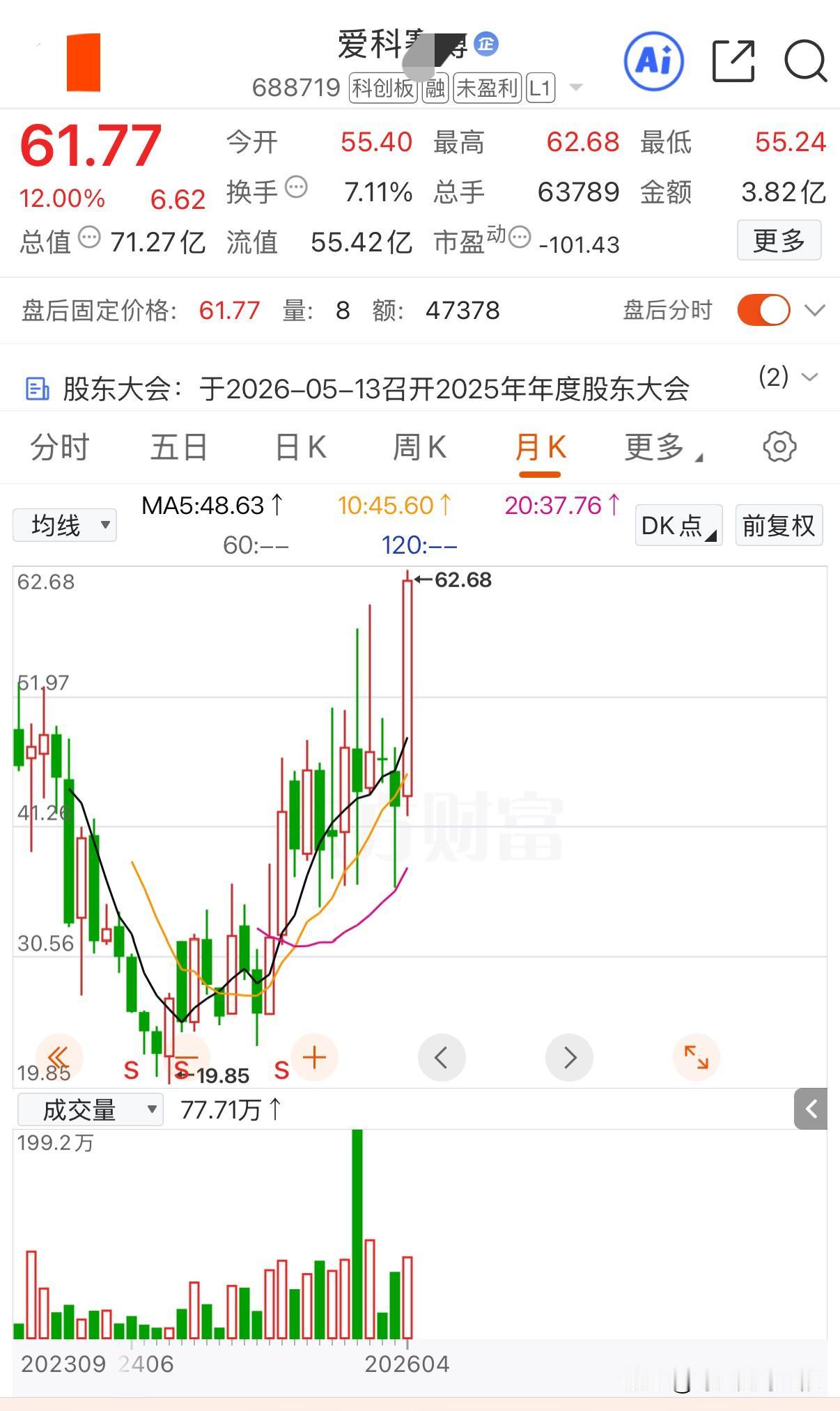 但相比而言,我同事买的科创板的爱科某博,去年亏损4000多万,今年一季度继续亏损1700多万,但是无论是年报还是一季报出来后照涨不误,今天干脆大涨12个点创出了历史新高!