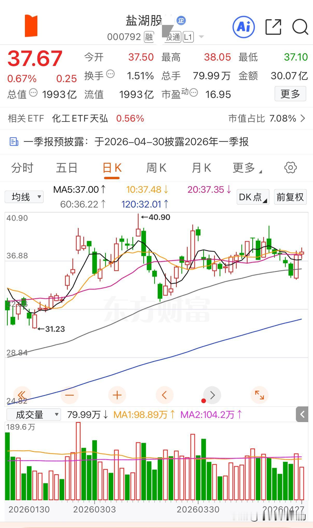 就拿盐湖来说吧,它一季度营收同比增长94.89%,归母净利润同比大增147.44%,这换了任何一只票第二天大概率涨停了,可是盐湖它是绩优股啊,业绩预告出来后直接高开低走,后面又连跌5天,为什么?因为它环比下降了26%!