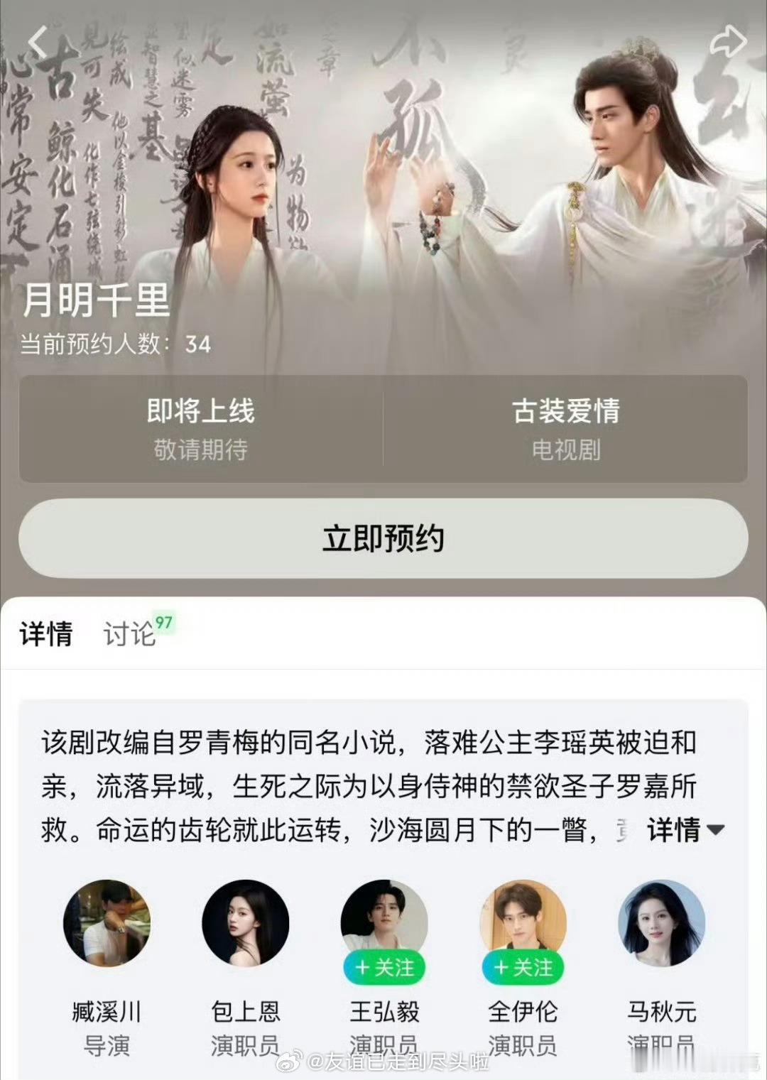包上恩,王弘毅《月明千里》腾讯是不看好吧,所以分销爱奇艺了王弘毅本来也回去演男二