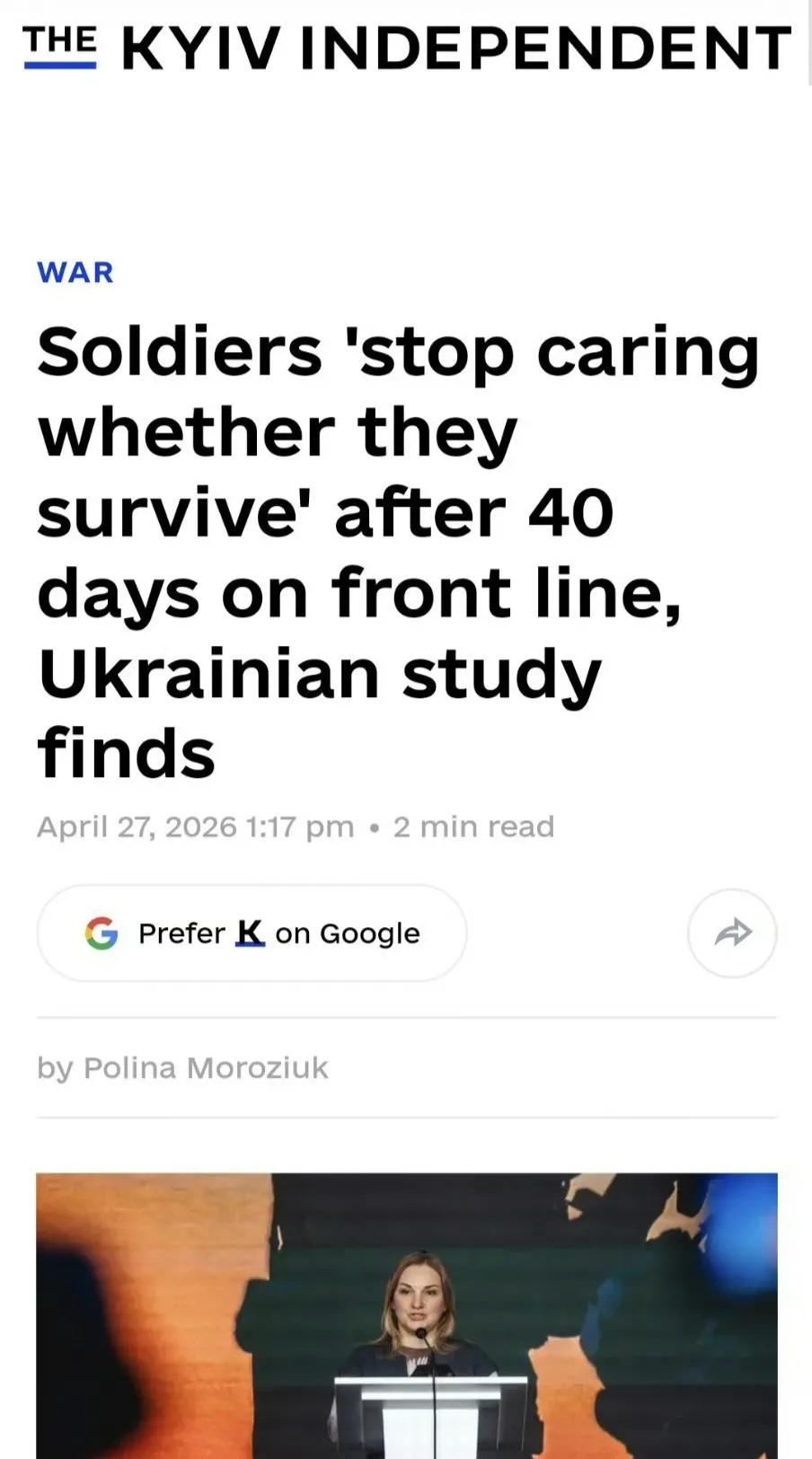 乌克兰《基辅独立报》报道称,根据他们的统计分析,乌军士兵只要在战场上存活40天以上,就会变得无所畏惧。