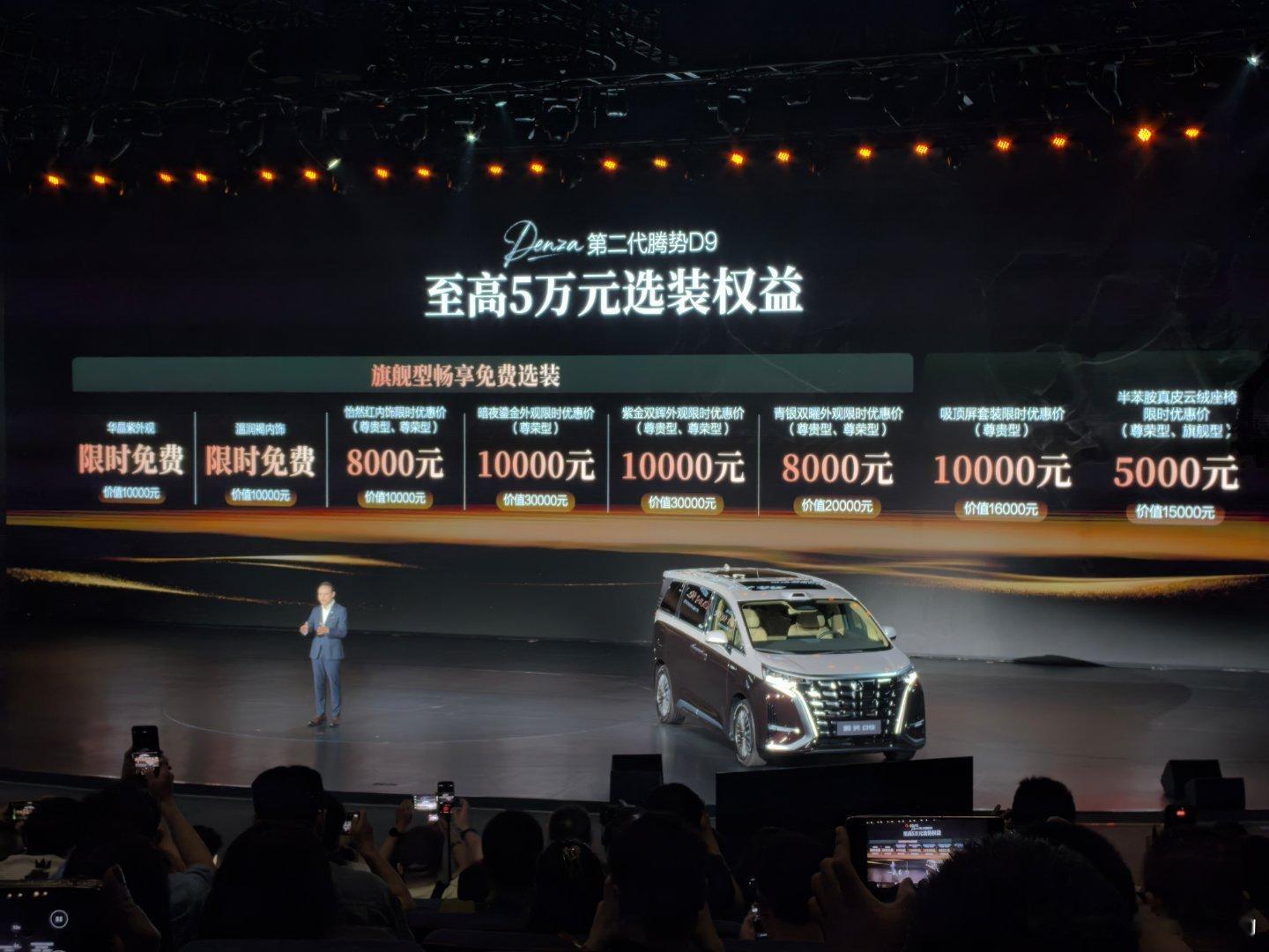 第二代腾势D9正式上市 4月27日,第二代腾势D9正式上市,新车起售价为35.98万元。这次上市的第二代腾势D9主要在内饰、电池、辅助驾驶以及智能座舱方面进行了升级,将会配备第二代刀片电池以及全新闪充技术。新车划重点新车情报局