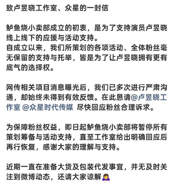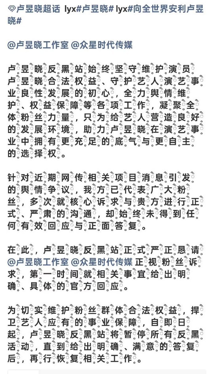 卢昱晓官方后援会、反黑站、网宣组、线下应援组全部暂停活动,永拒《恰逢雨连天》 ...