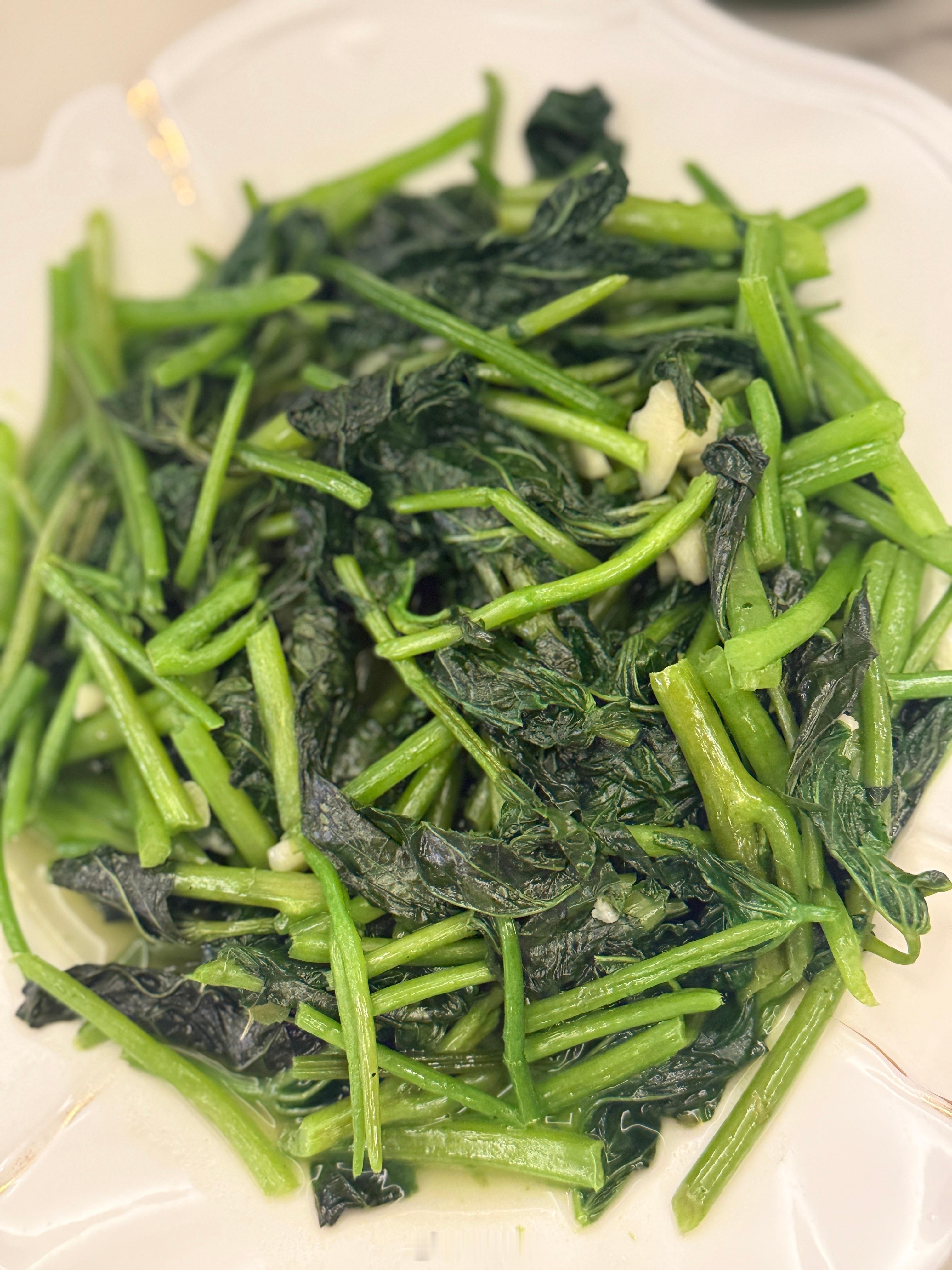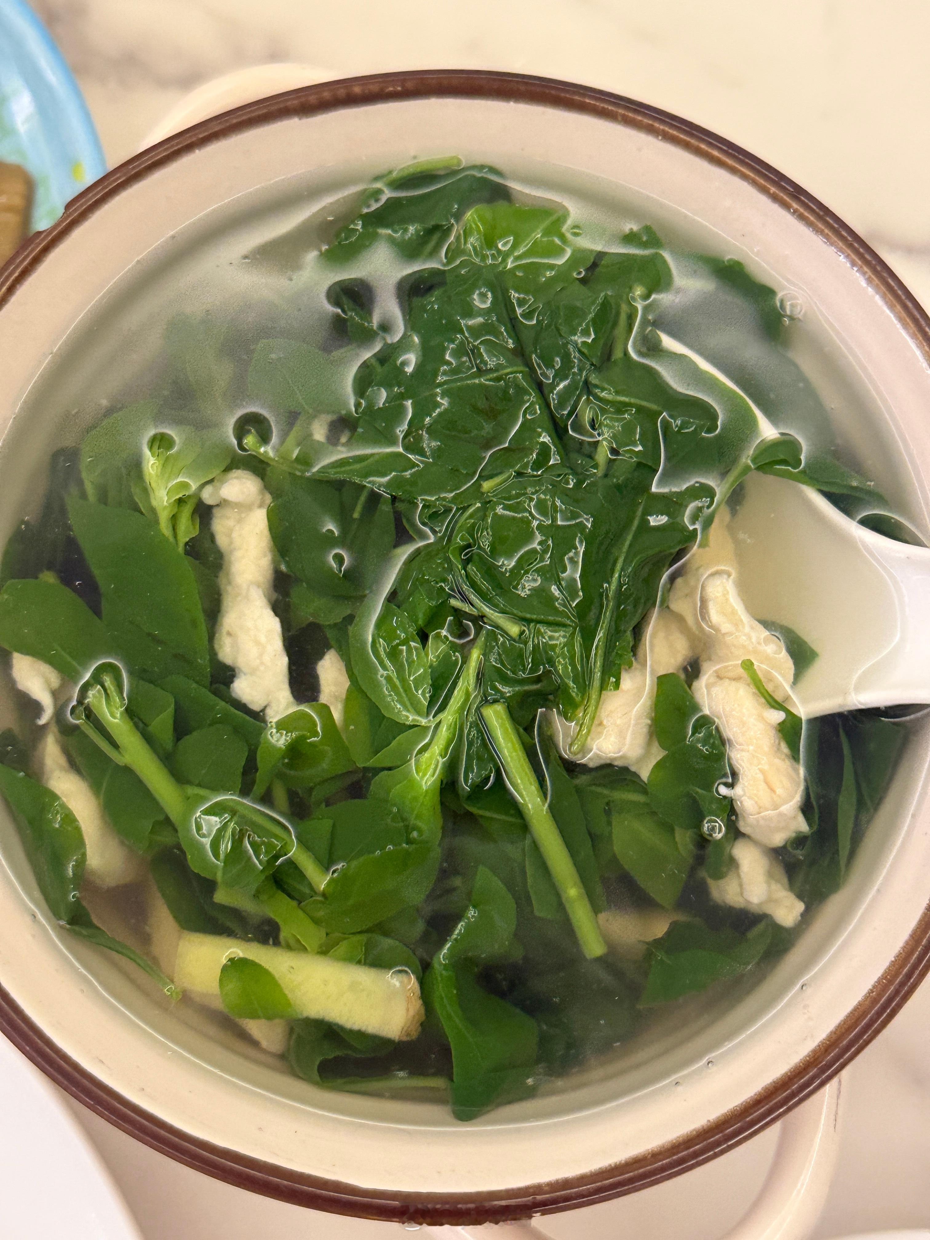 白水捞竹蛏、几乎无油的番茄炖排骨、炒菠菜、几乎无油的茄子、看不到半点油花的枸杞叶肉片汤,藜麦饭。。
